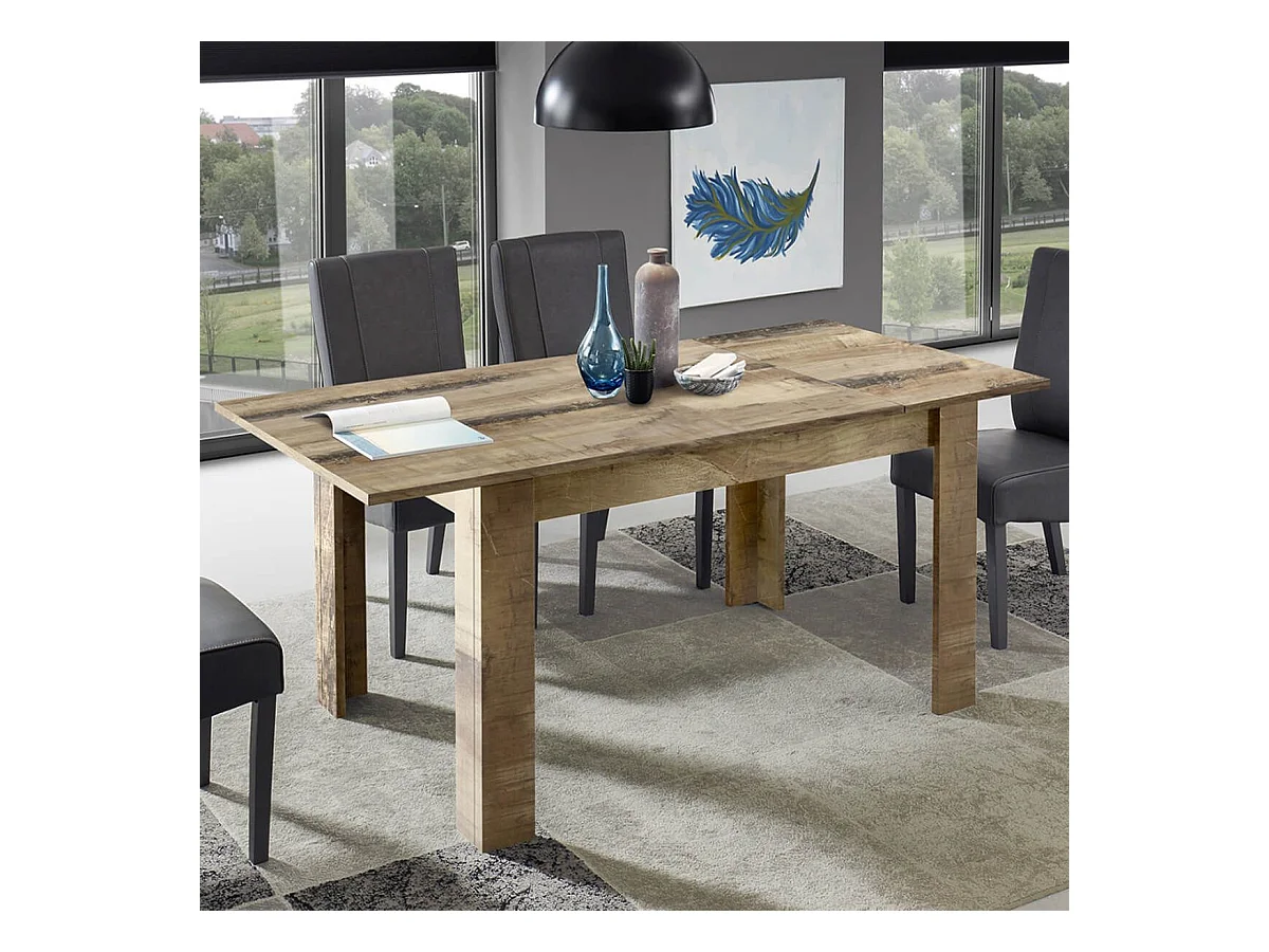 ANTIK - Table Repas Extensible Plateau et Pieds Aspect Bois Antik