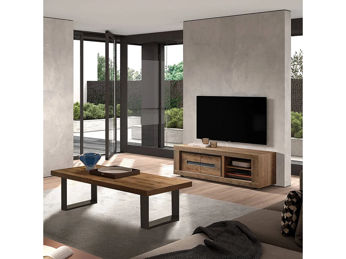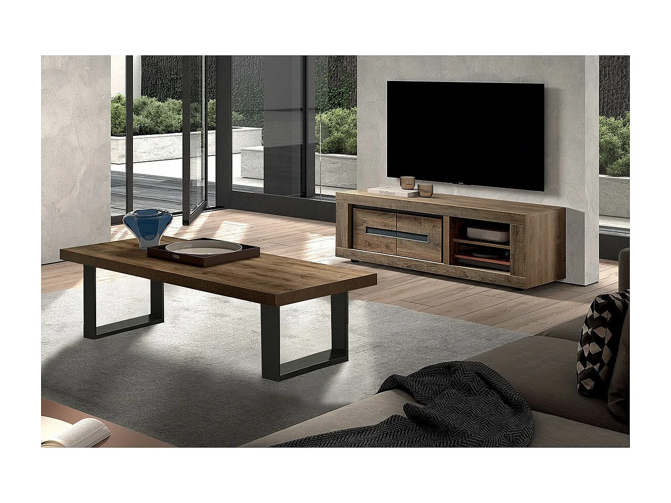 ANTONIN - Ensemble Salon Meuble TV et Table Basse Piétement U Métal Aspect Bois Finition Tropix