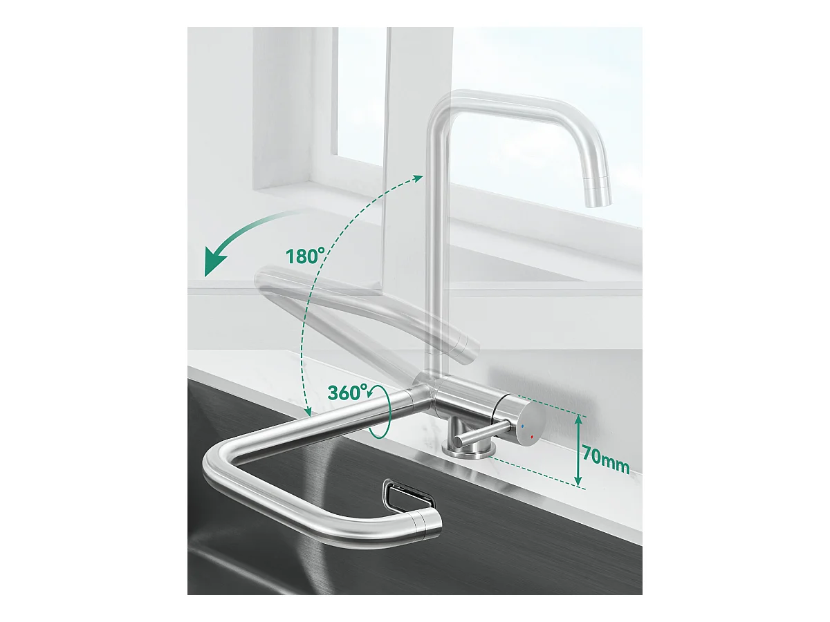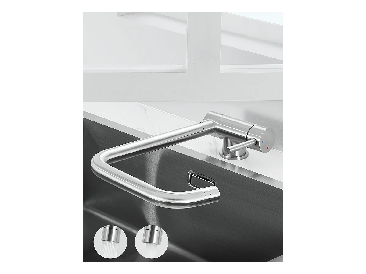 ANYCEE MAX Robinet Cuisine Rabattable avec 2 Jets, Mitigeur Evier Repliable sous Fenêtre Pivotant à 360, Robinetterie Pliable devant Fenêtre