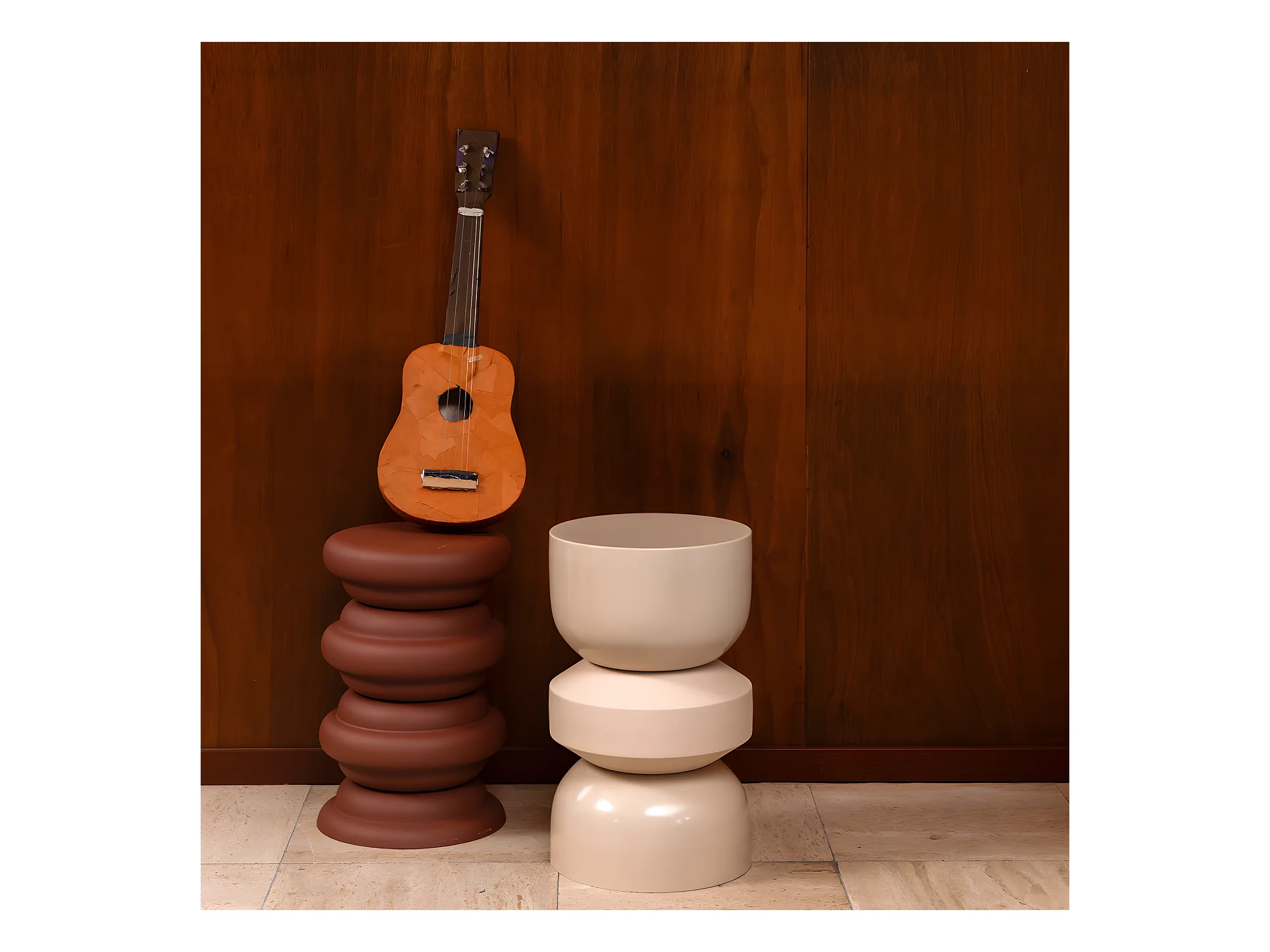 Table à café Table d'appoint Totem en métal Beige D 38 cm