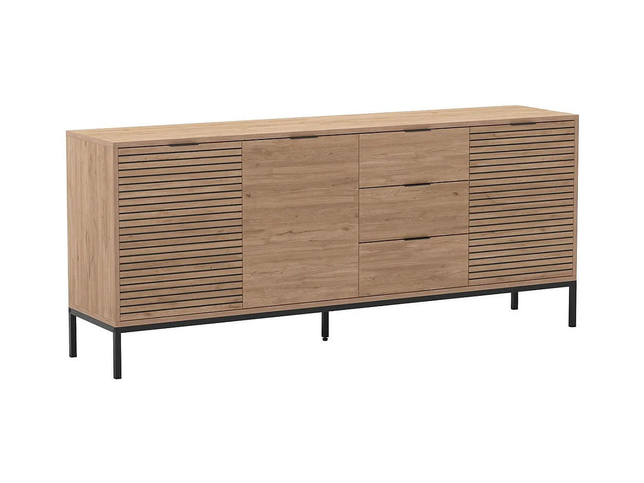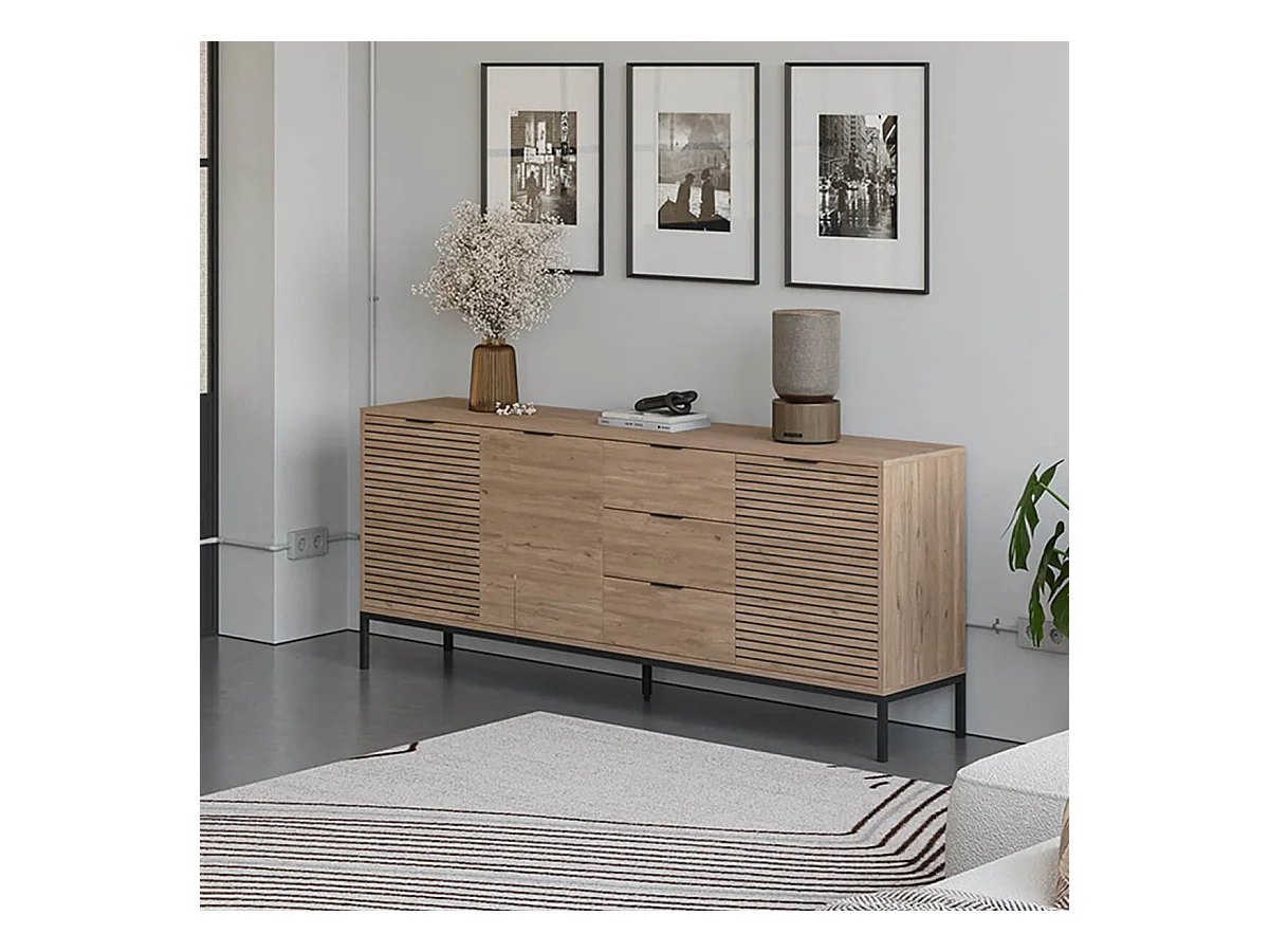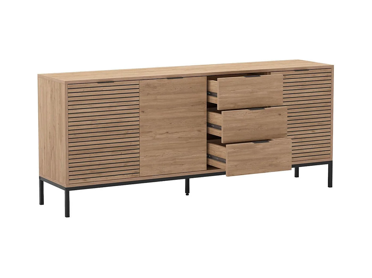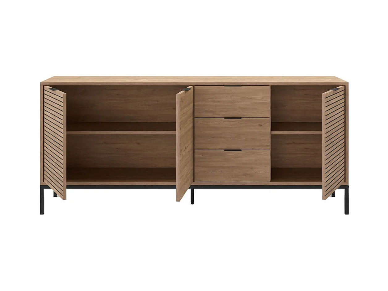 APPA - Buffet 3 Portes 3 Tiroirs Aspect bois Tasseaux Pieds Métal