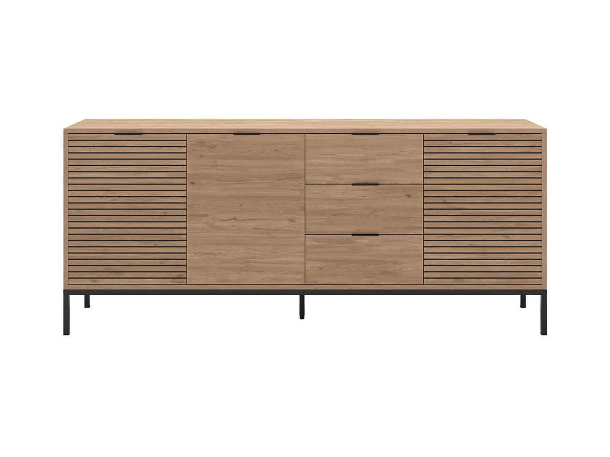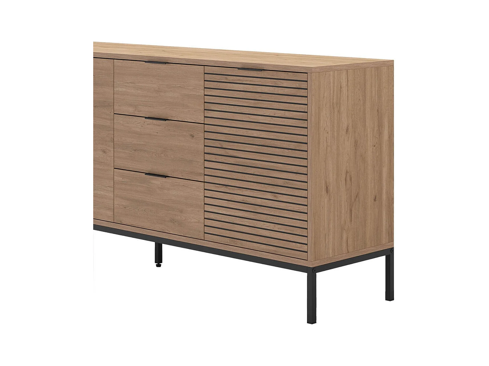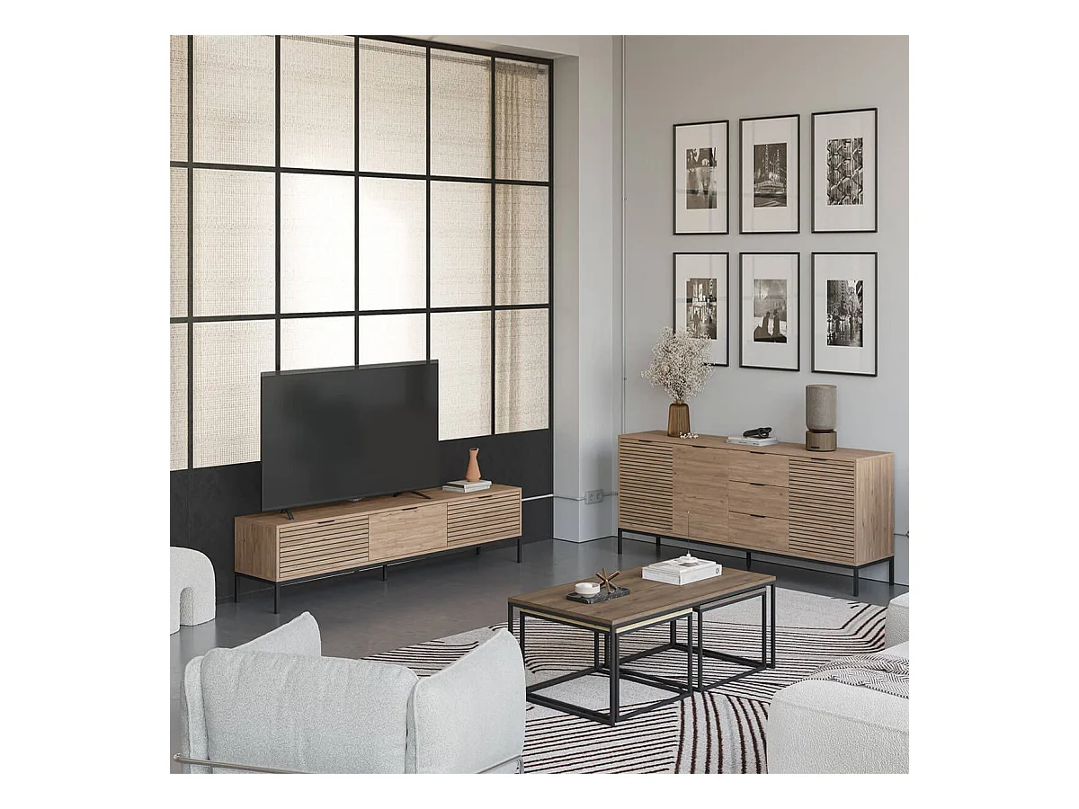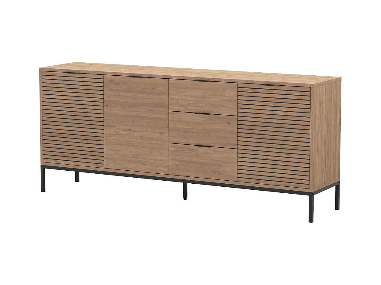 APPA - Buffet 3 Portes 3 Tiroirs Aspect bois Tasseaux Pieds Métal