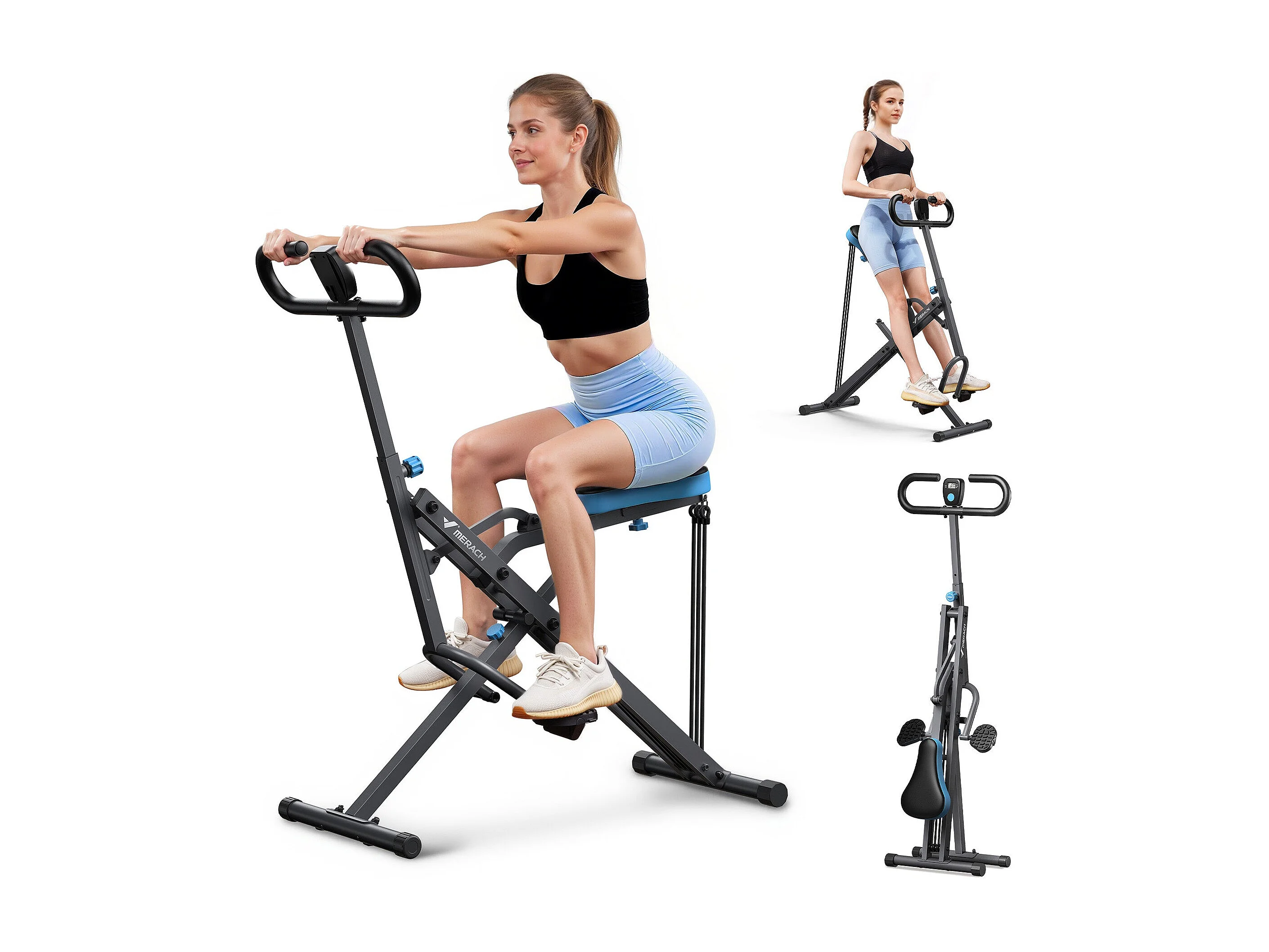 Appareil de Fitness MERACH, Type Équitation, Résistance Réglable, Pliable, 160 kg, Écran LCD, Pour Abdos/Jambes/Dos, Gris