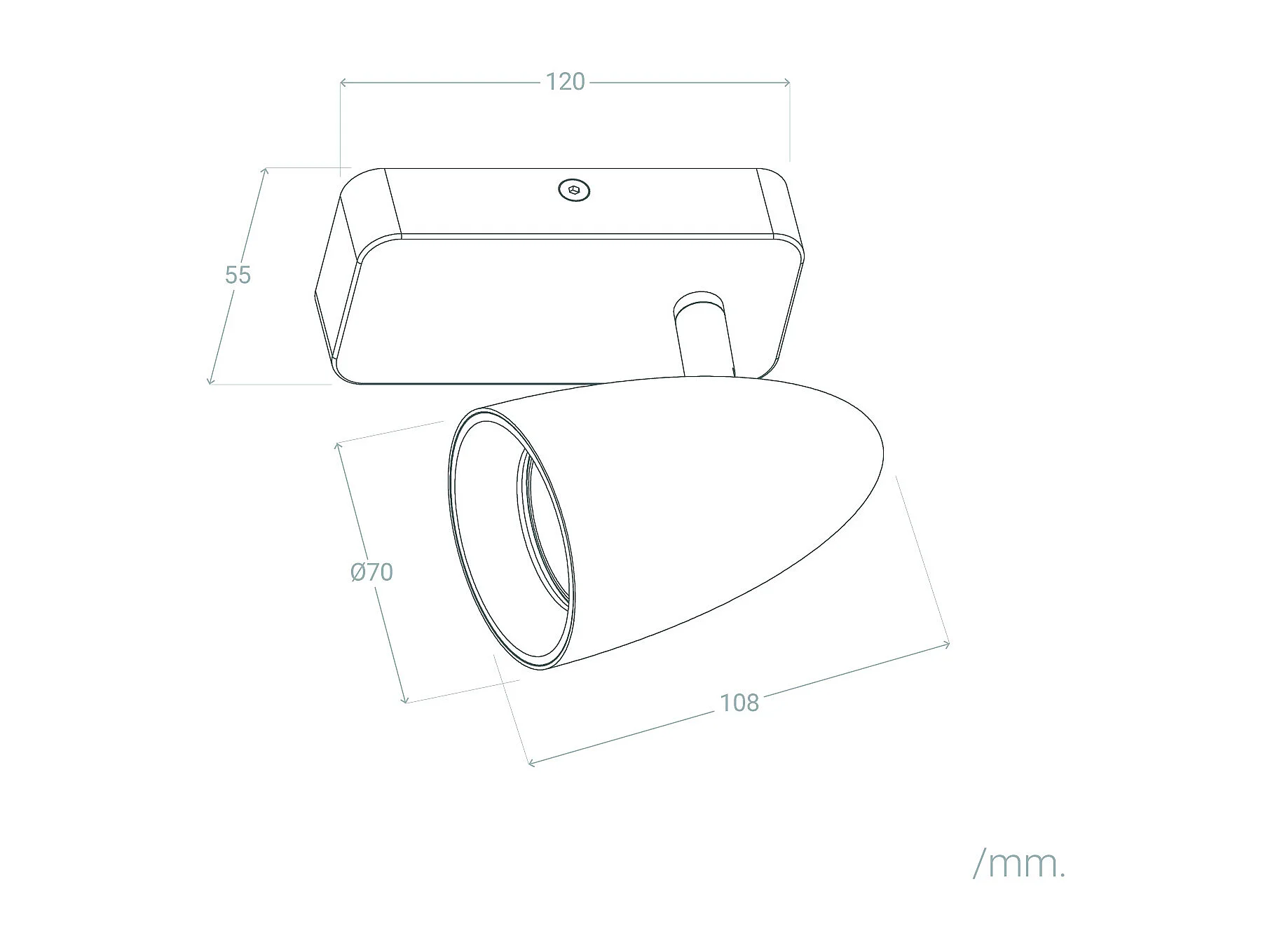Applique Aluminium Rectangulaire Adrien 1 Spot Gris Pierre