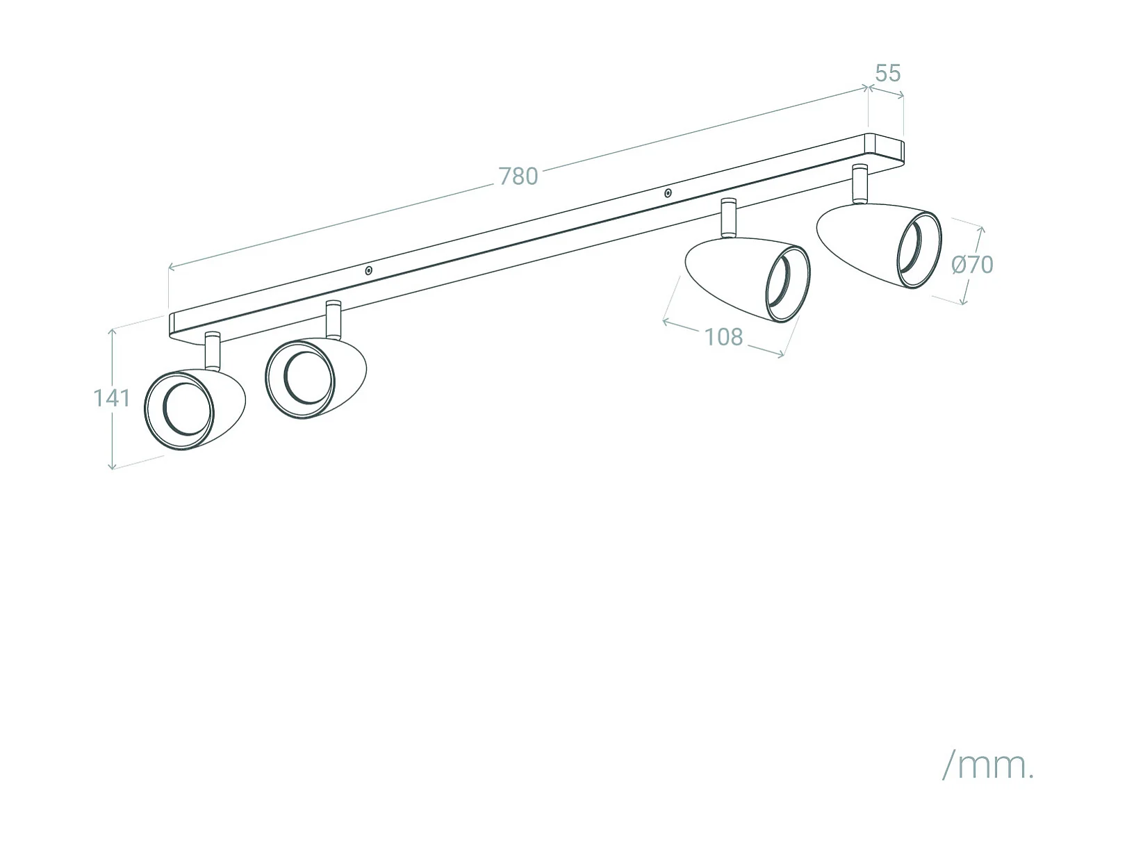 Applique Aluminium Rectangulaire Adrien 4 Spots Gris Pierre