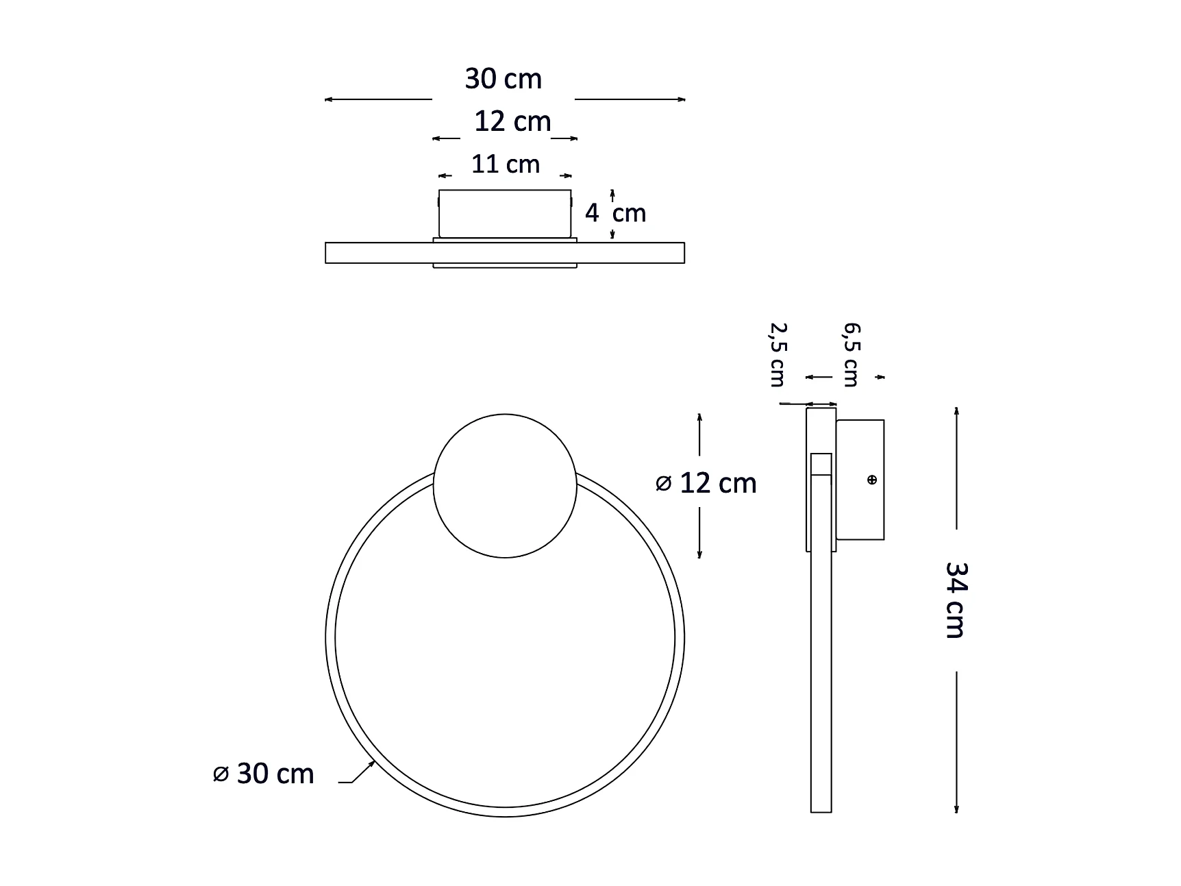 Applique circulaire noire et laiton 30 cm - Alisa