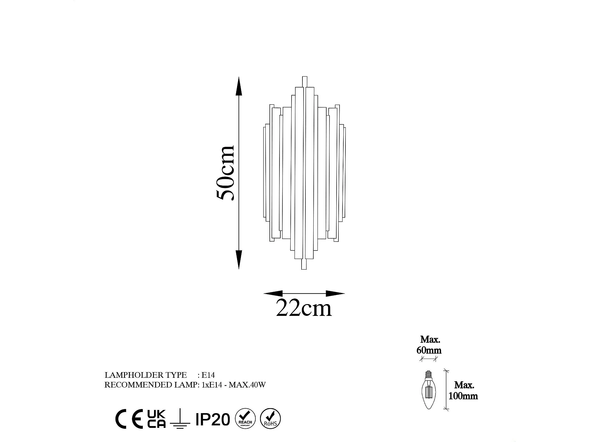Applique murale LED design, 1 tige noire verticale VIESTE