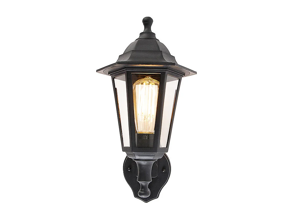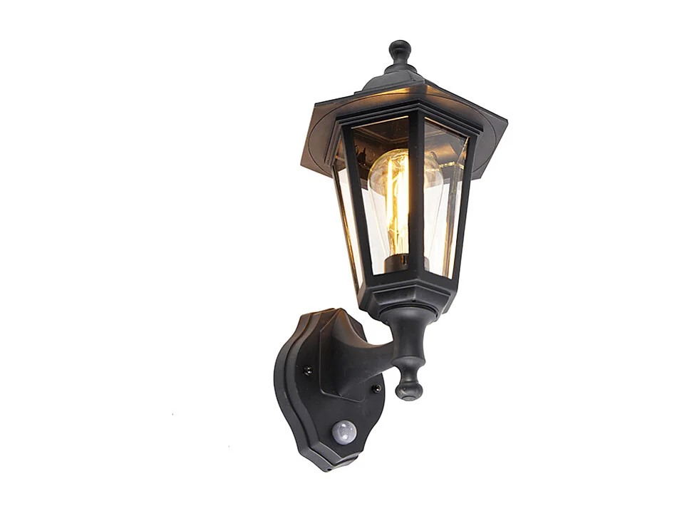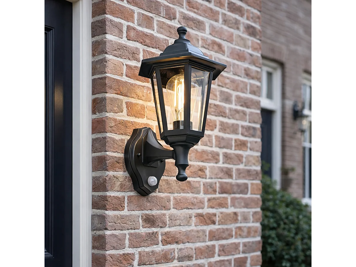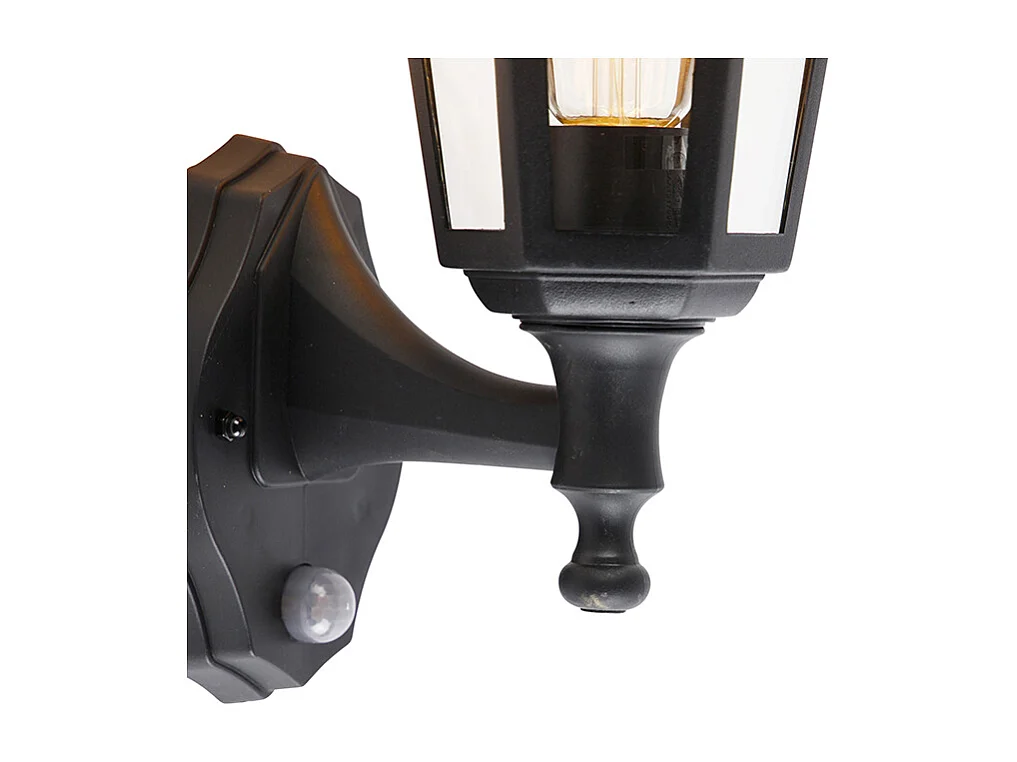 Applique murale d'extérieur classique noire avec détecteur de mouvement - New Haven