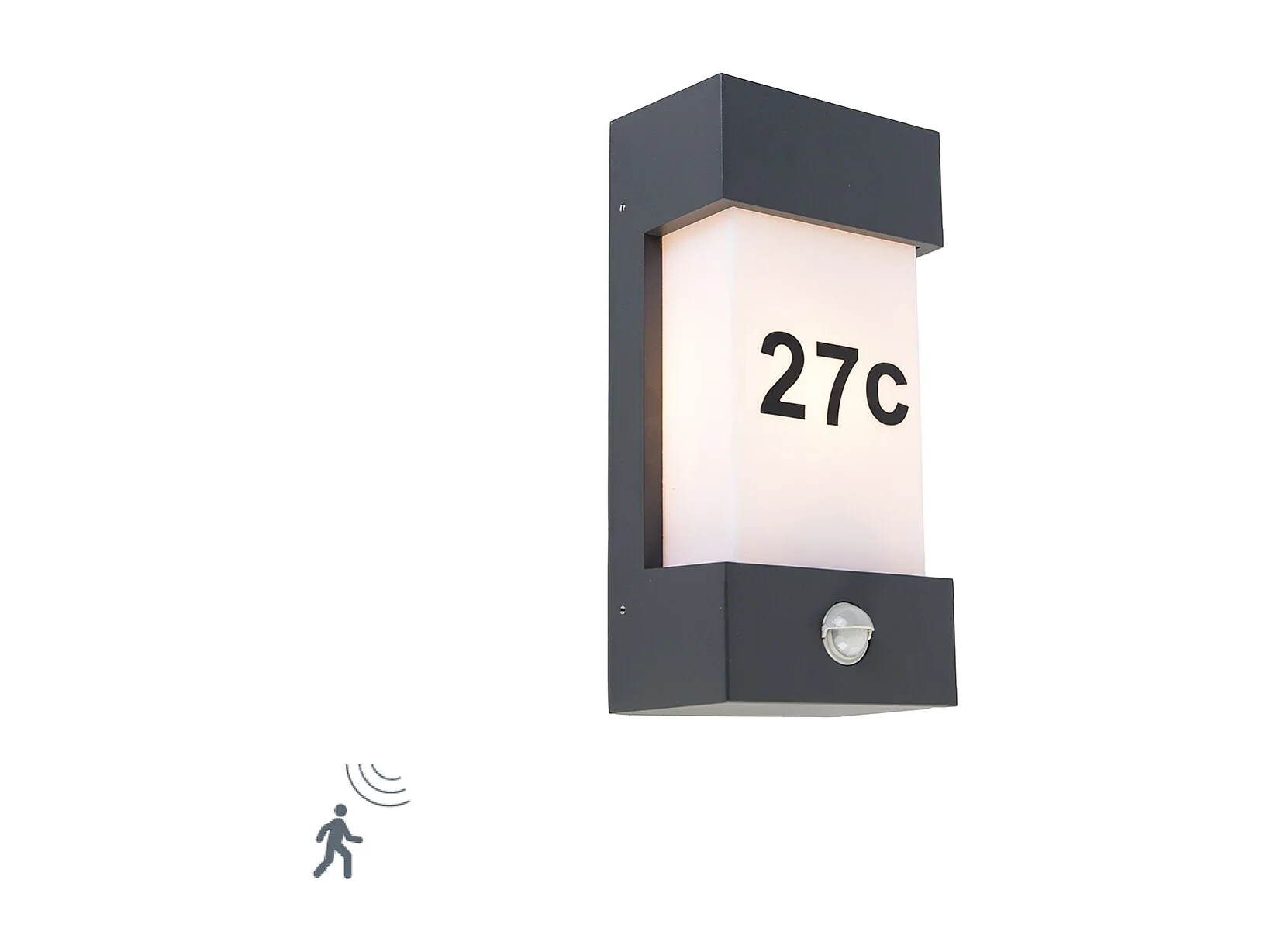 Applique murale d'extérieur gris foncé IP44 avec détecteur de mouvement - Tide