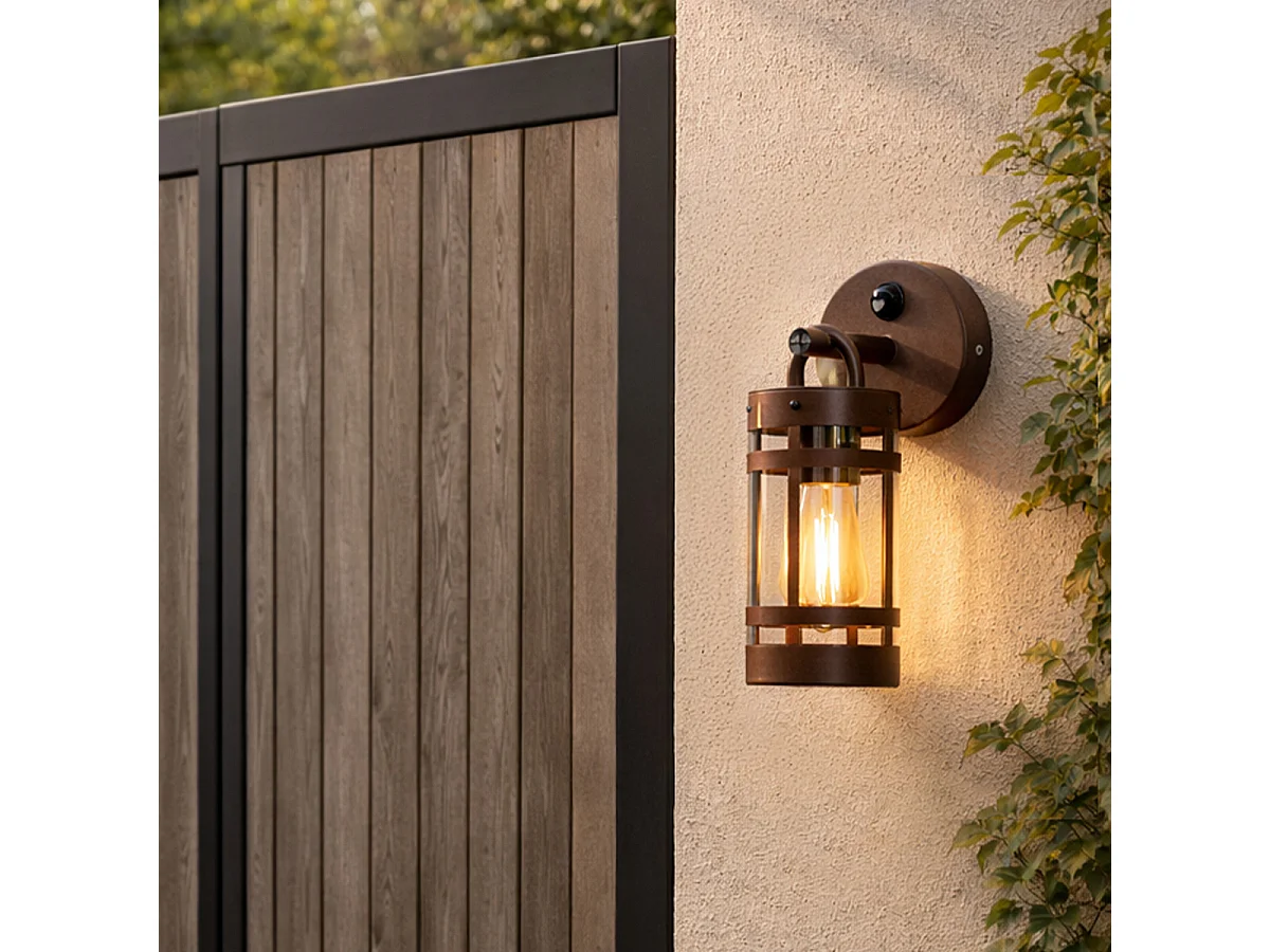 Applique murale d'extérieur brun rouille IP44 avec détecteur de mouvement - Ruben