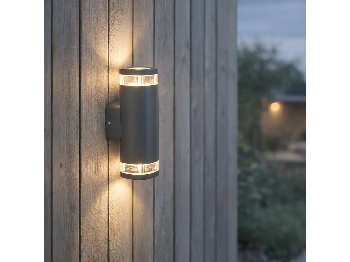 Applique murale extérieure moderne carrée 2 lumières gris foncé - Fox