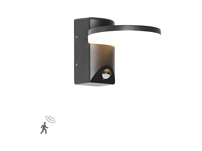 Applique moderne noire IP44 avec détecteur de mouvement - Baleno II