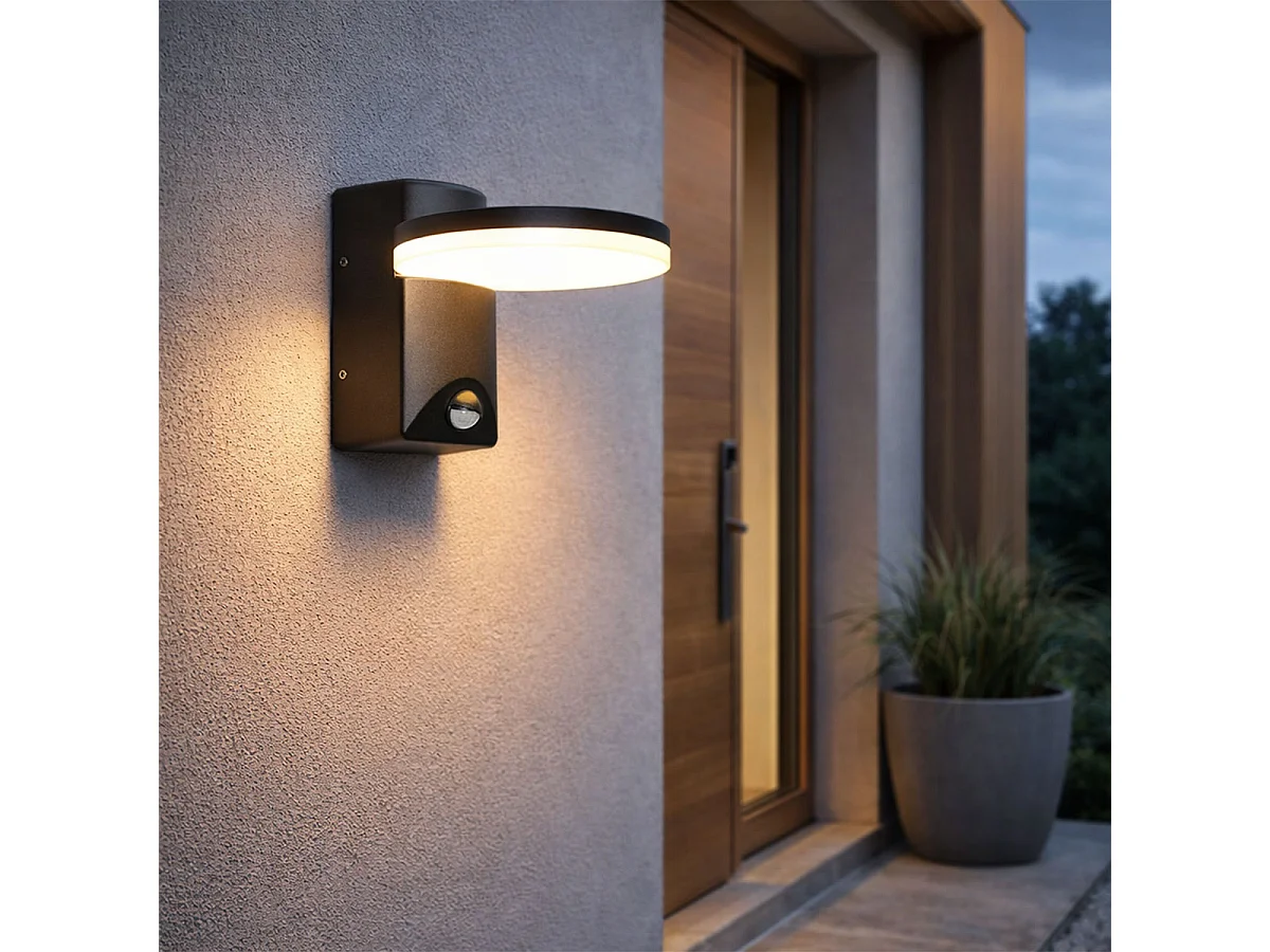 Applique murale extérieure noire avec LED intégrée IP54 détecteur de mouvement - Esmee