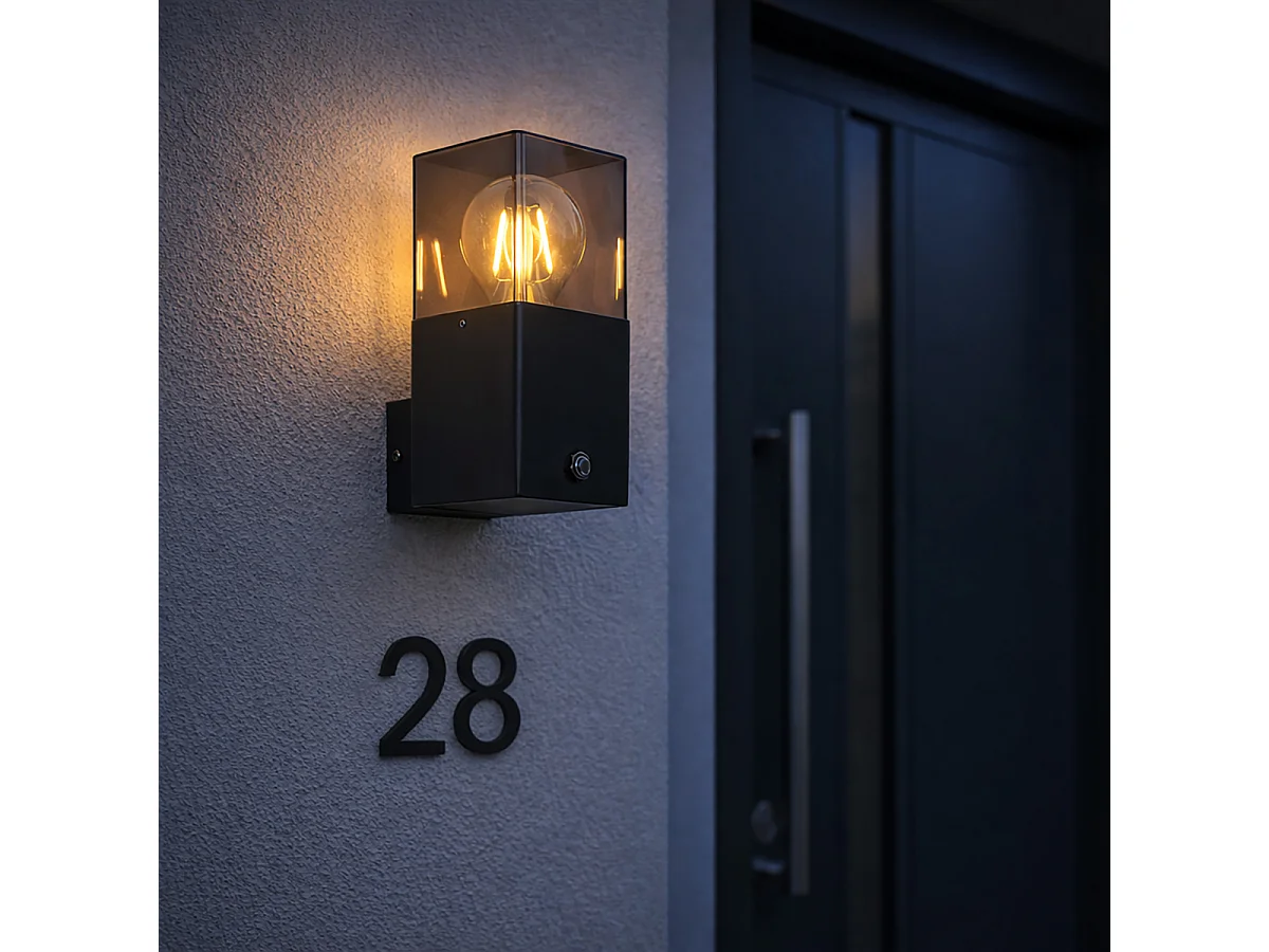 Applique murale extérieure noire IP44 avec capteur crépusculaire - Danemark