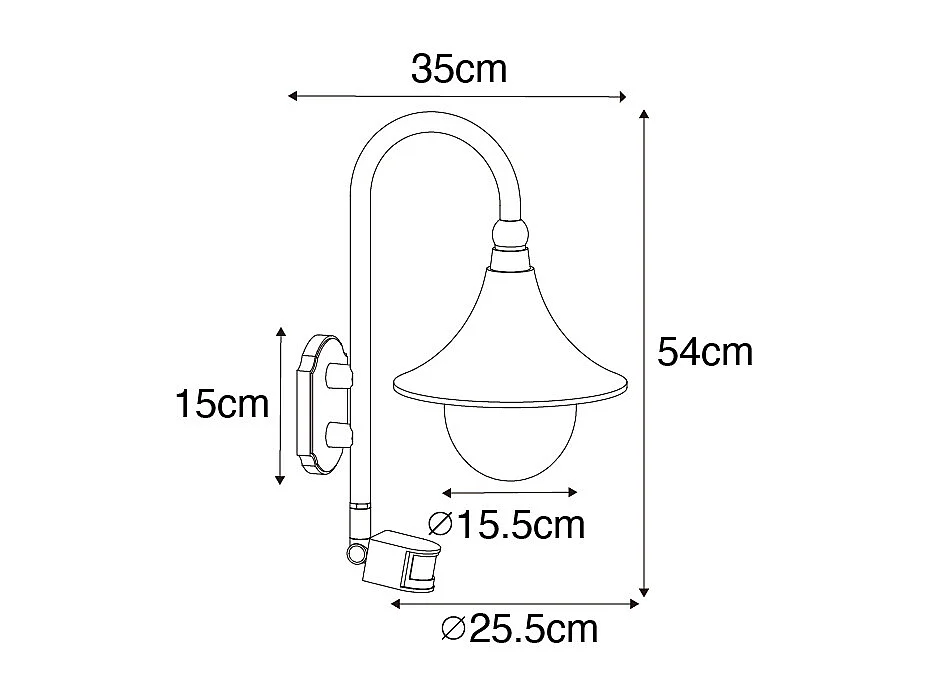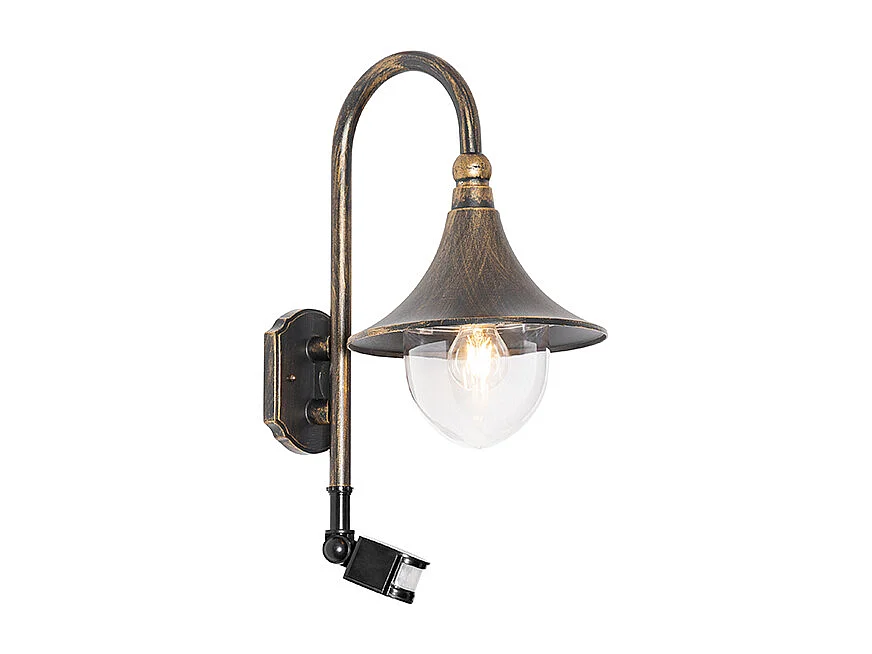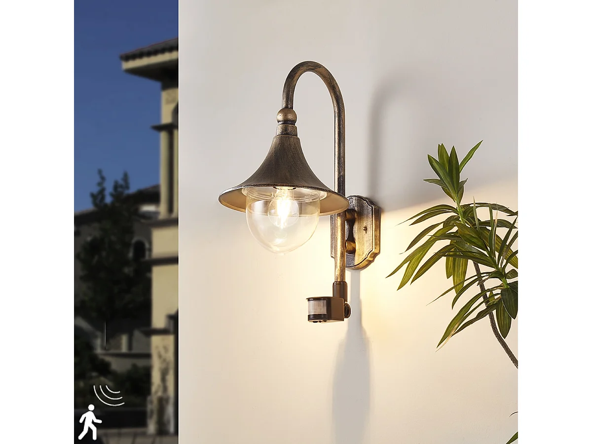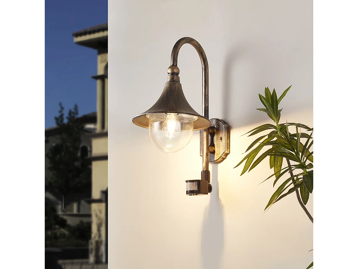 Applique d'extérieur or antique IP44 avec détecteur de mouvement - Daphné