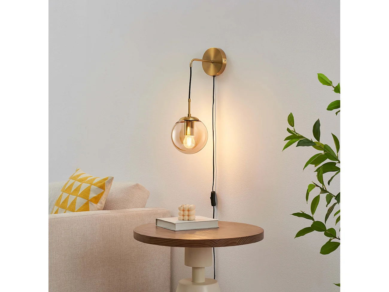 Applique dorée en verre avec câble et interrupteur - Robyn