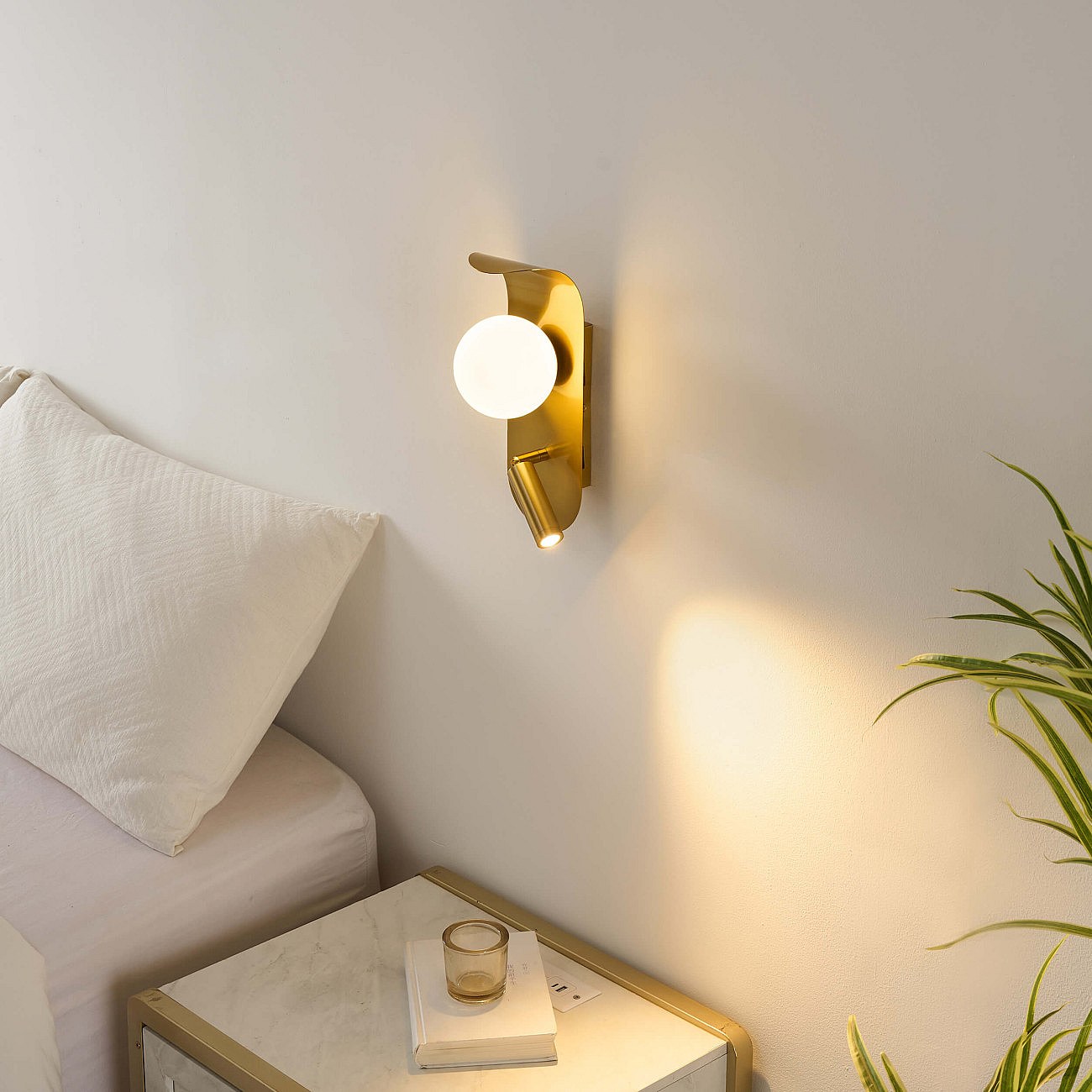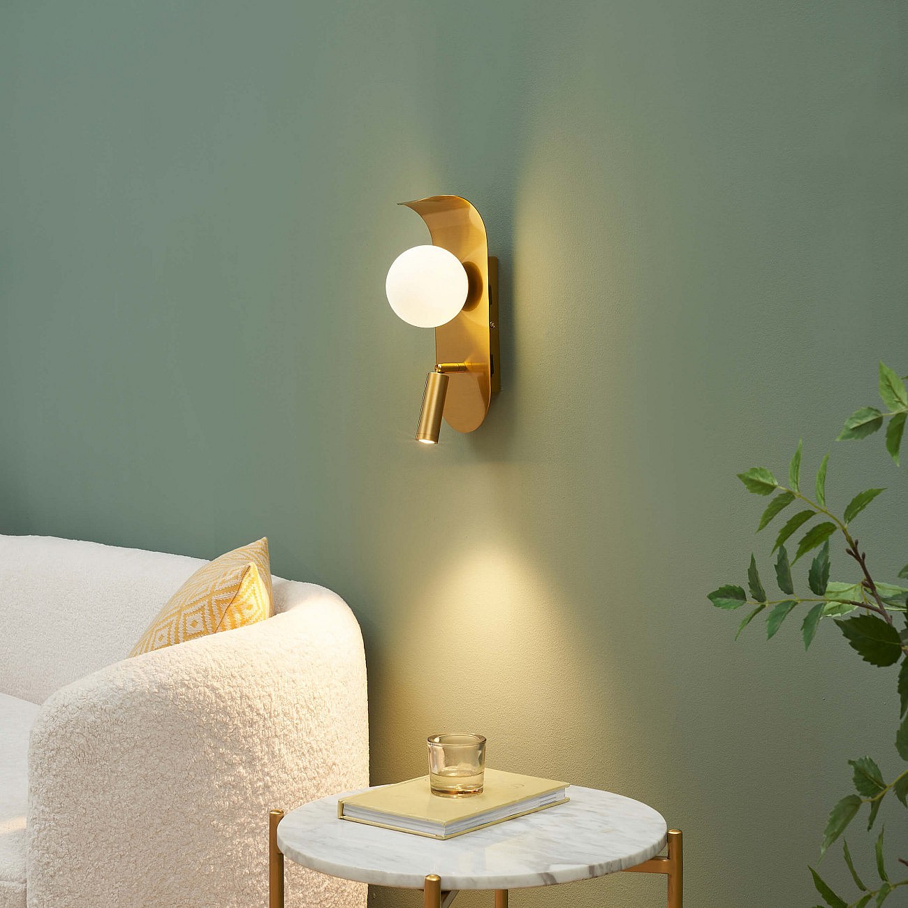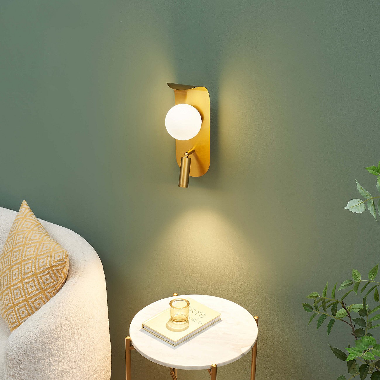 Applique dorée glamour avec interrupteur liseuse et boule en verre - Matalia