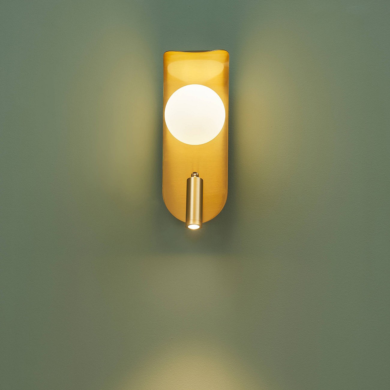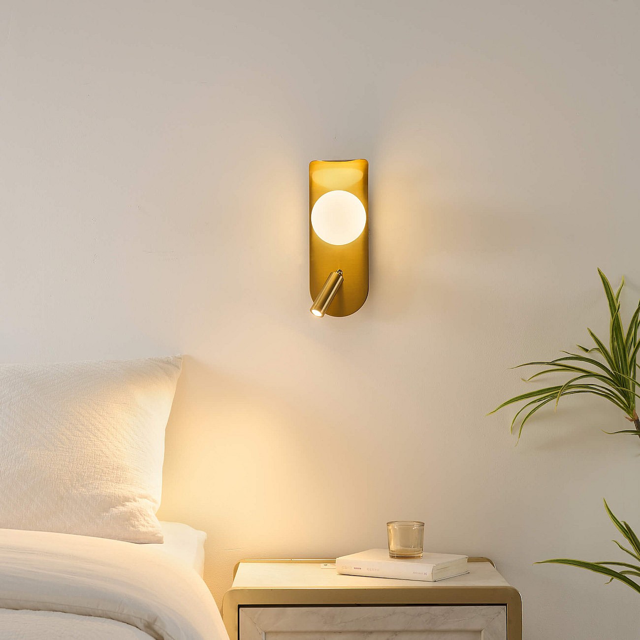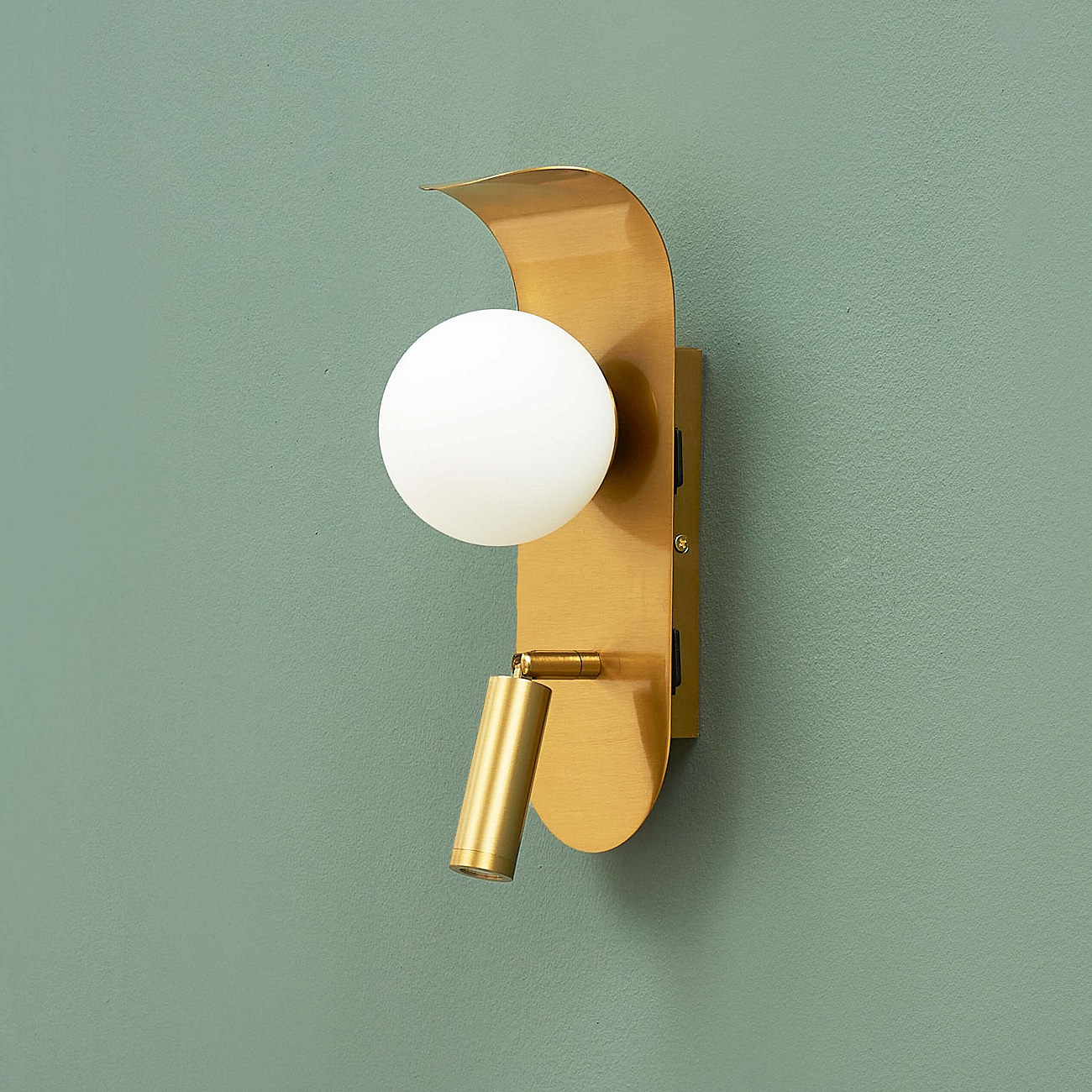 Applique dorée glamour avec interrupteur liseuse et boule en verre - Matalia