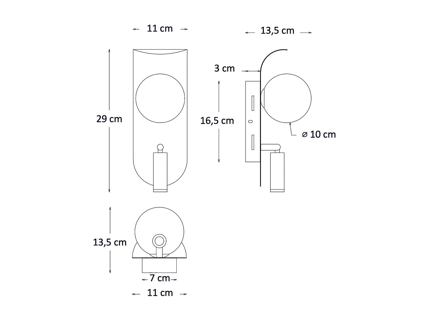 Applique ultra minimaliste boule blanche sur socle doré - Kandi