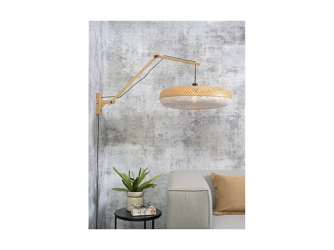 Applique en bambou avec bras marron et abat-jour bicolore