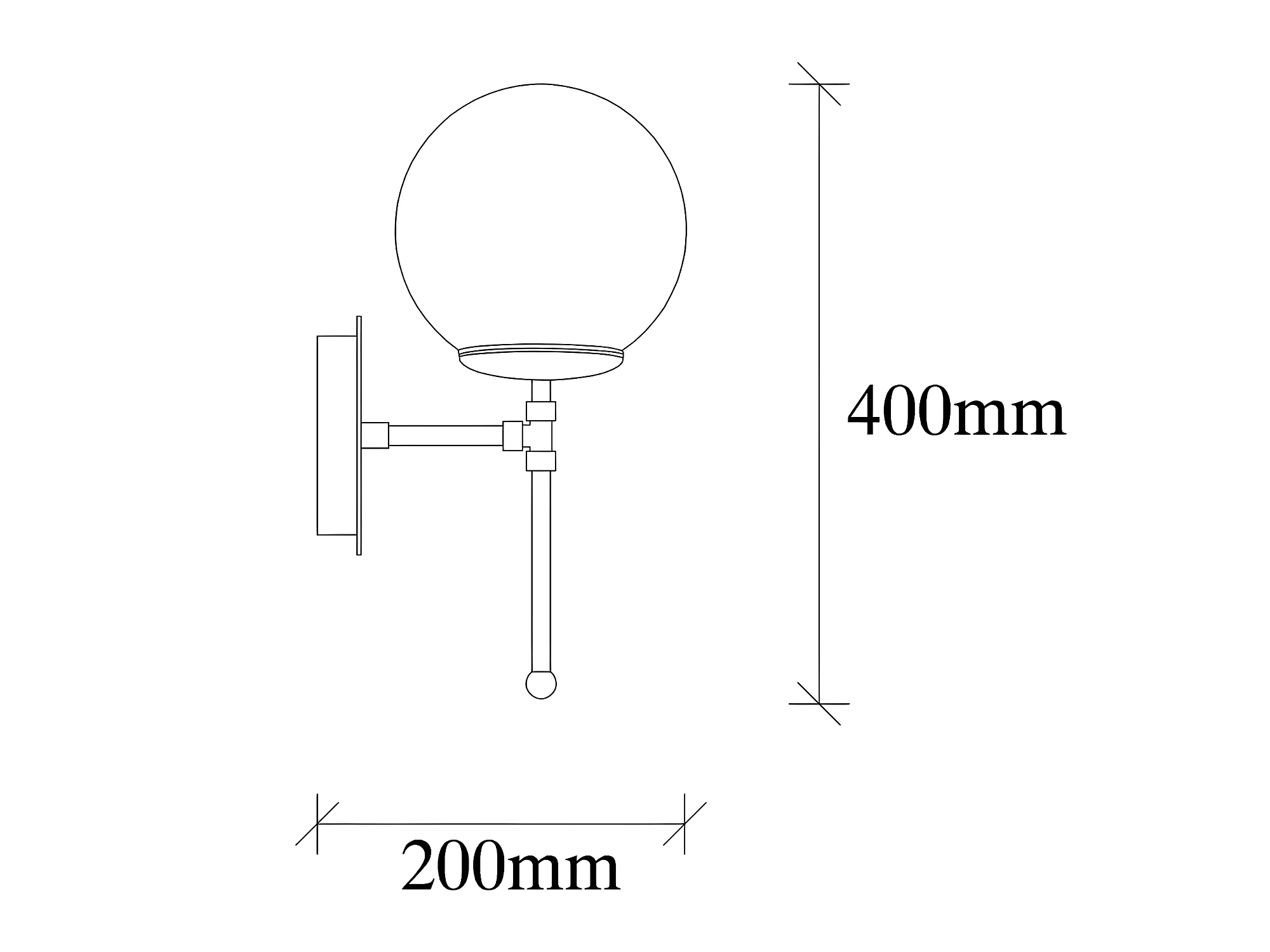 Applique Garet avec structure verticale en métal doré et sphère en verre 1xE27