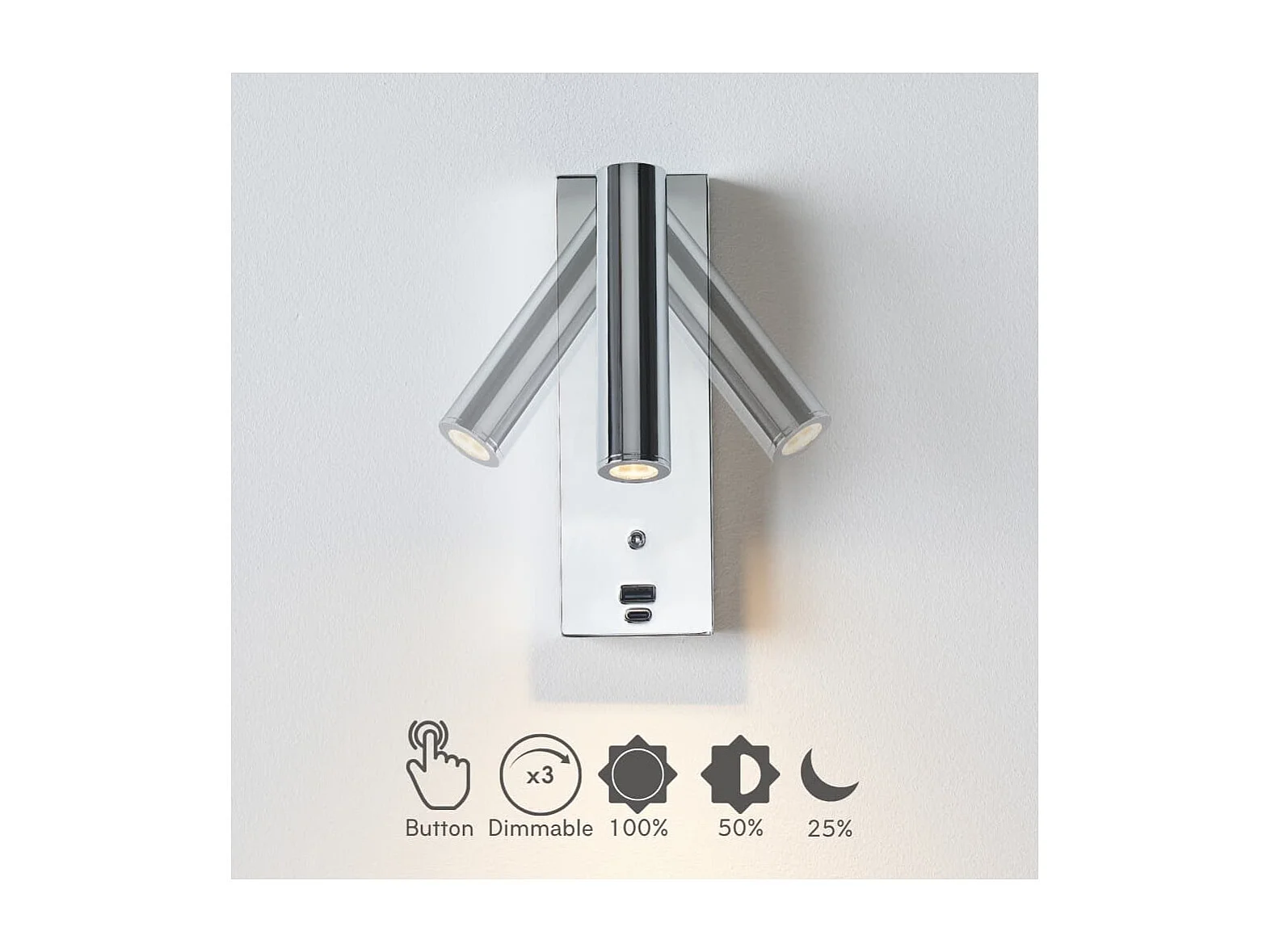 Applique LED liseuse chromée port USB et variateur intégrée - Tofino