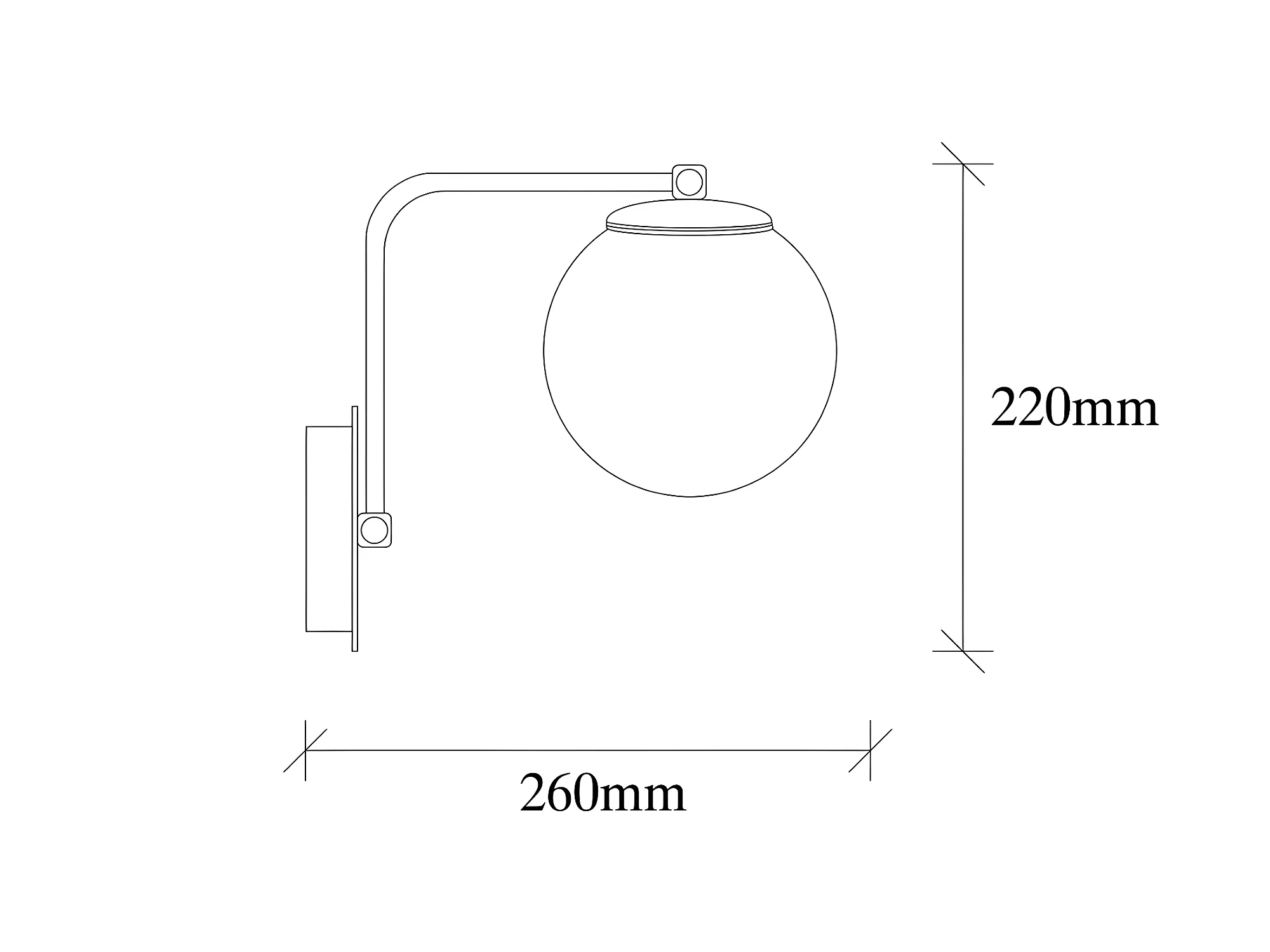 Applique Marga avec structure en métal noir et sphère en verre 1xE27