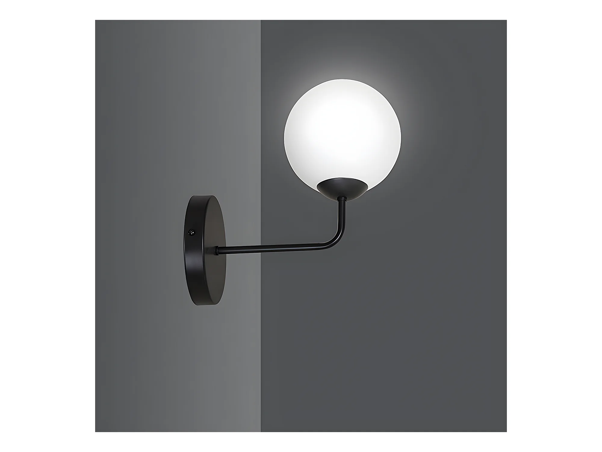 Applique Mobis avec bras vers le haut en noir et 1 sphère en verre 1xE14