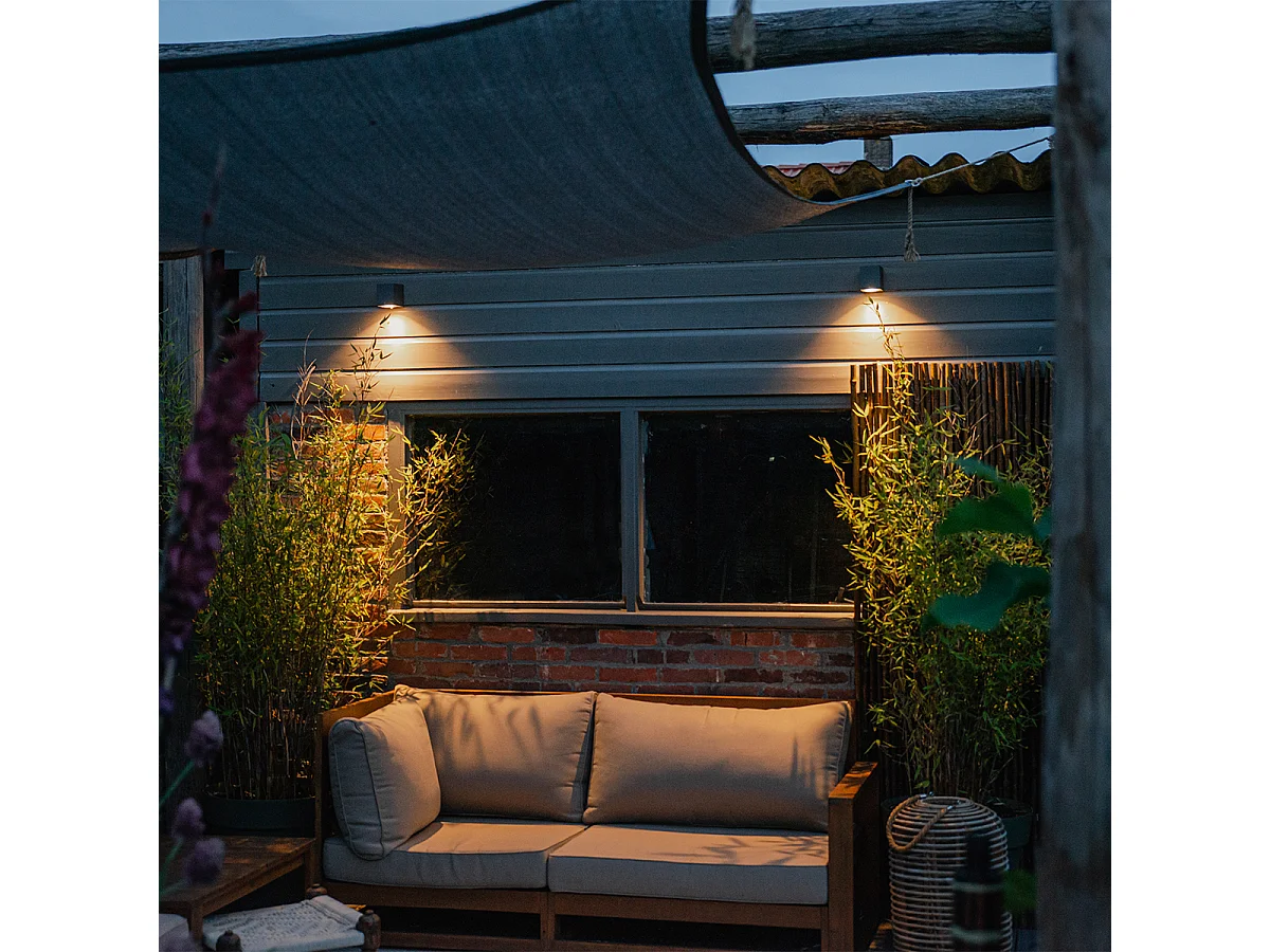 Applique murale grise 2 lumières IP44 avec capteur crépusculaire - Baleno