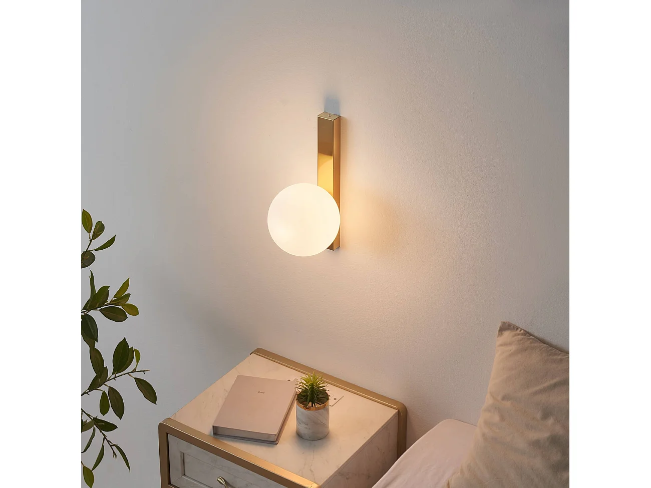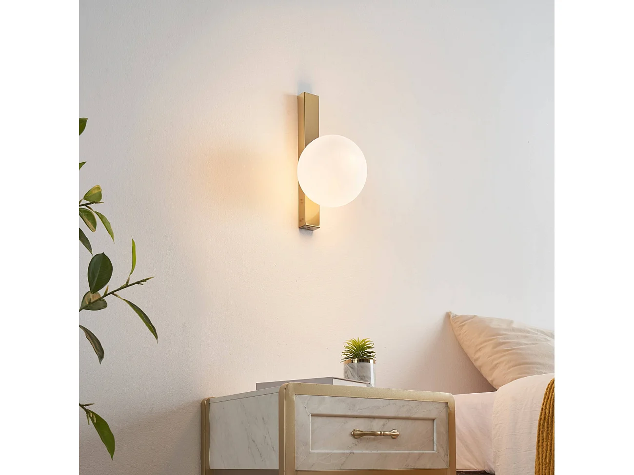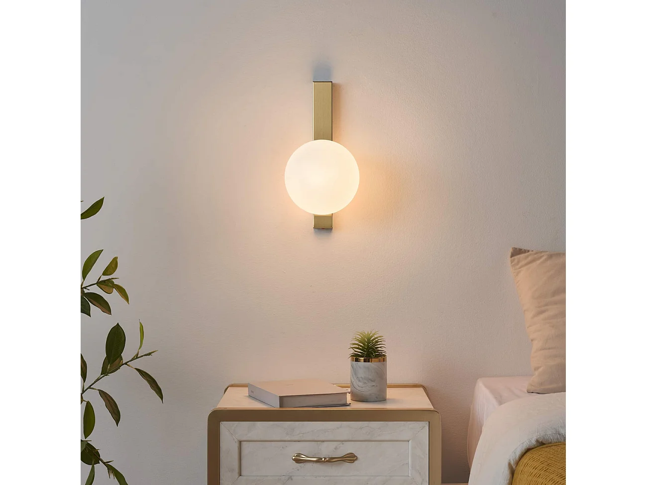 Applique ultra minimaliste boule blanche sur socle doré - Kandi
