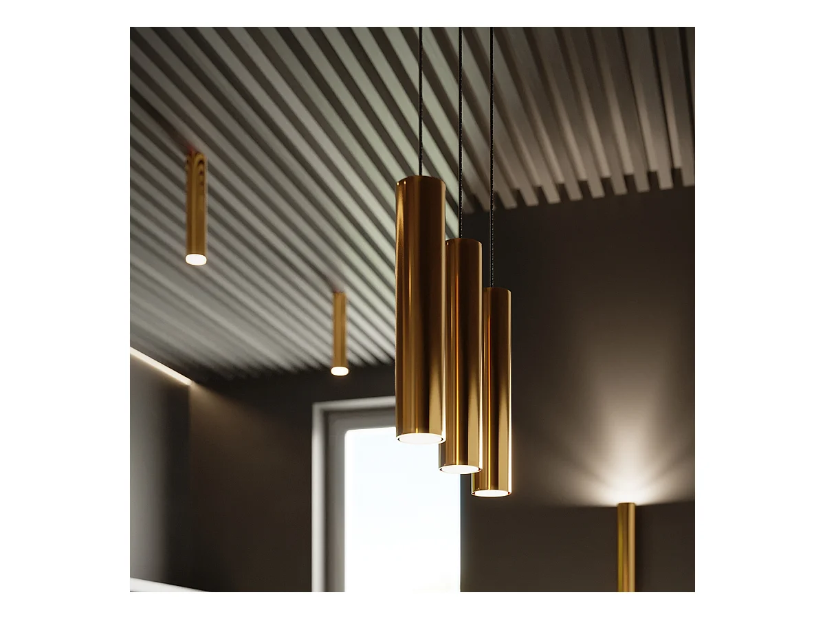 Plafonnier Durlin Moderne En Acier - 2 Sources Lumineuses - L.20 X H.40 Cm - Or/Blanc
