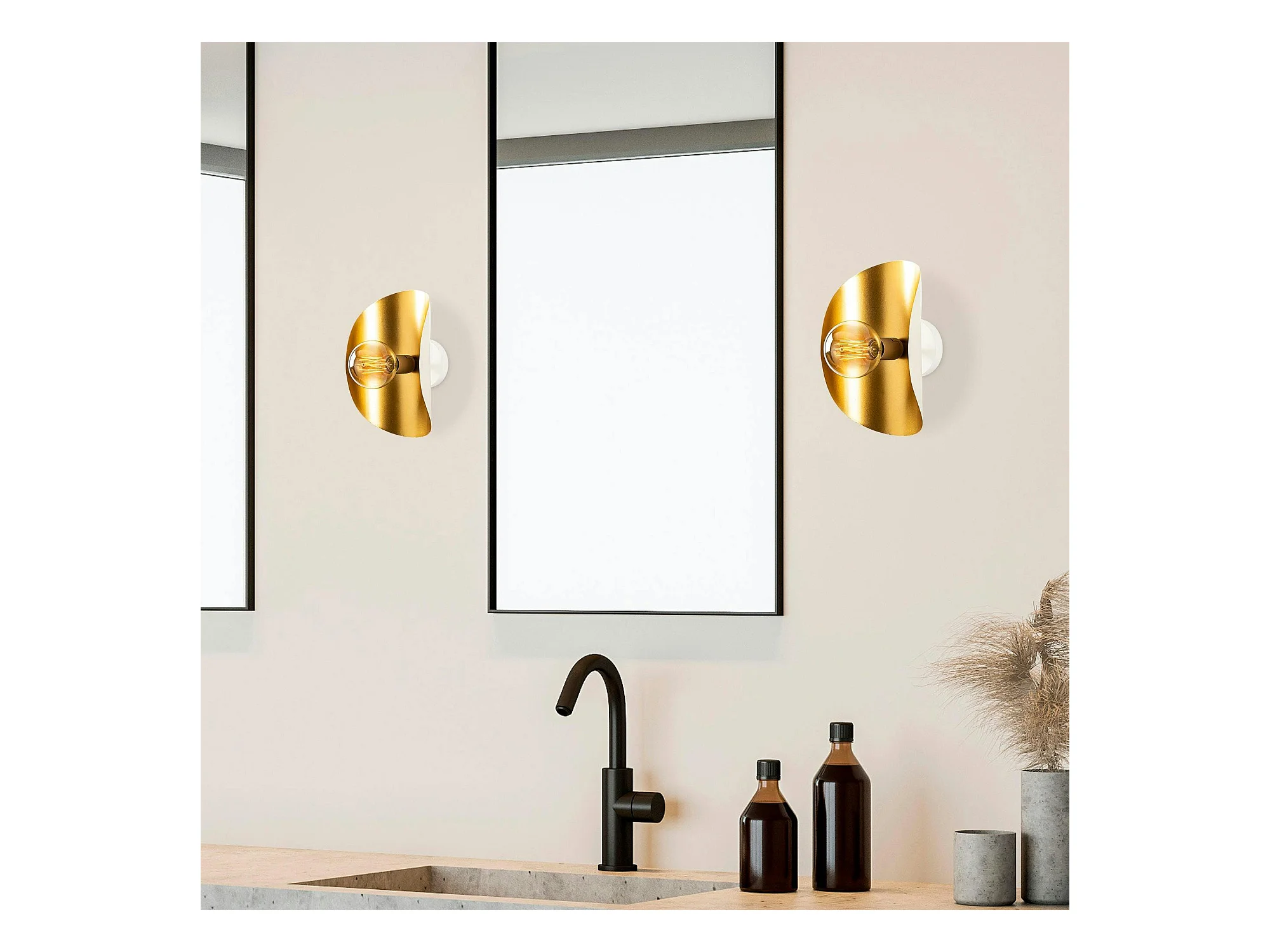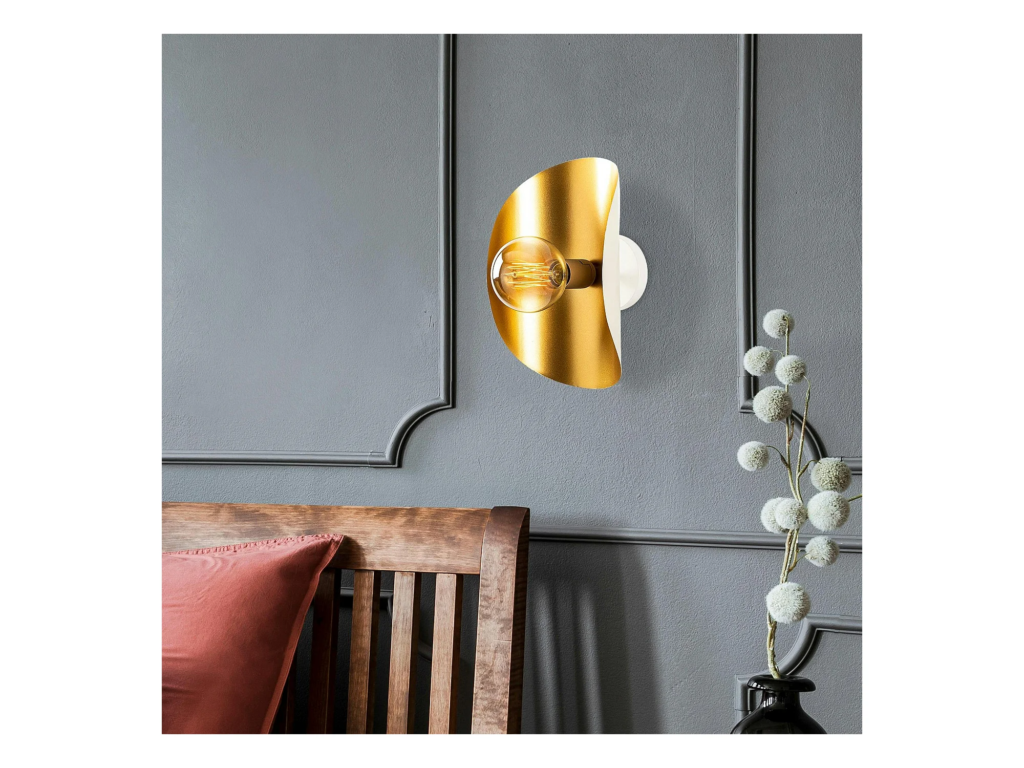 Applique murale design blanc & or, abat-jour galbé SINOP