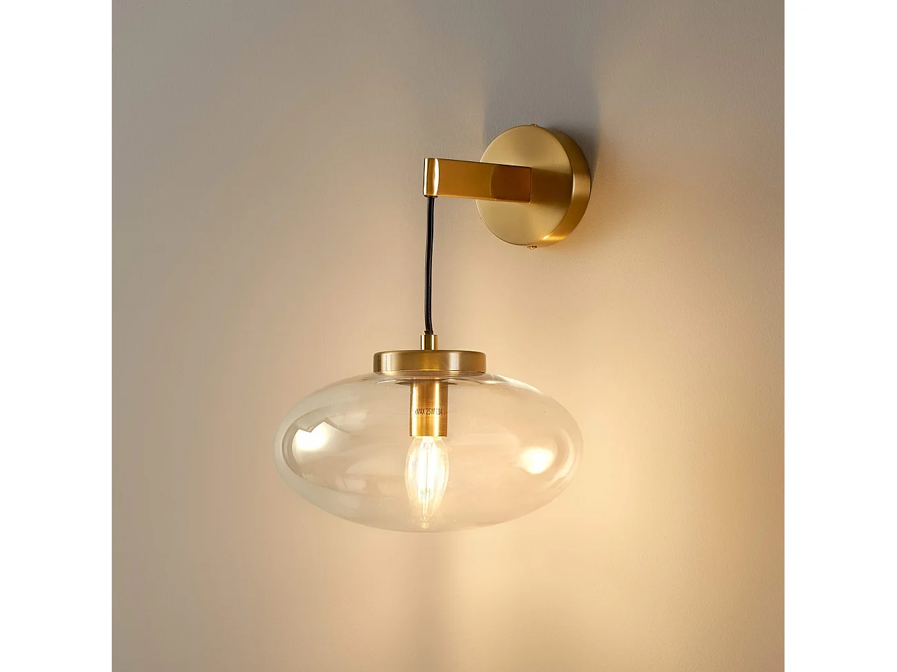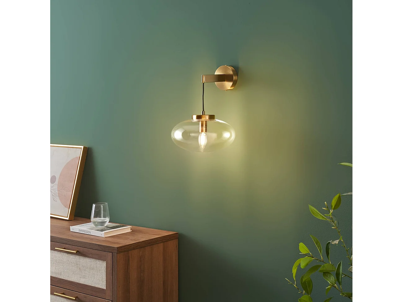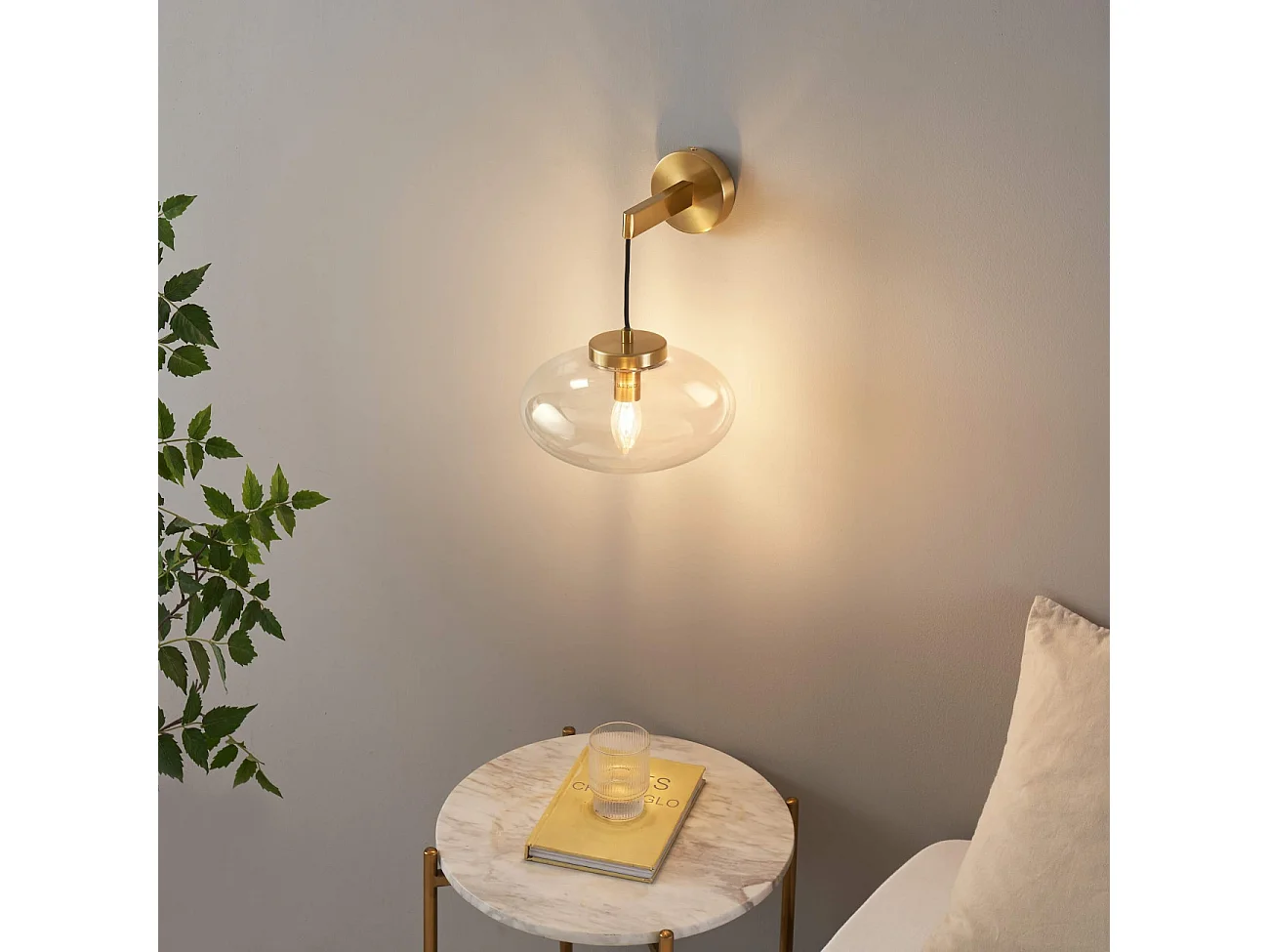 Applique murale dorée avec globe en verre soufflé suspendu - Milenzo