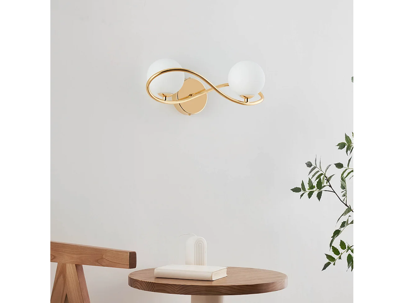 Applique murale dorée design double verre blanc - Novale