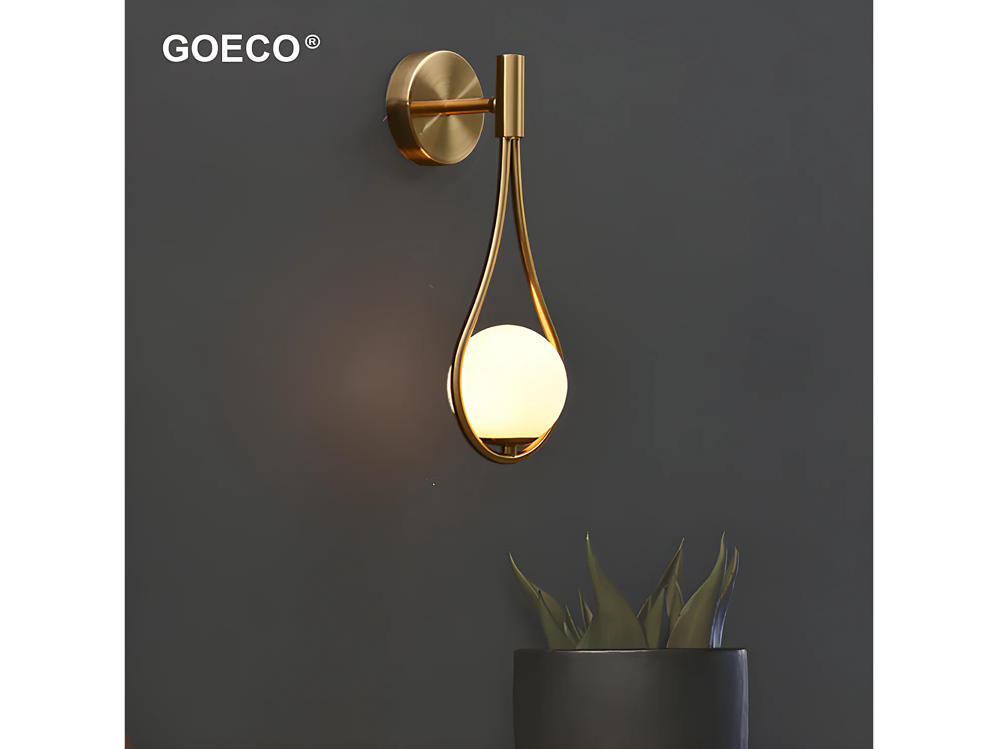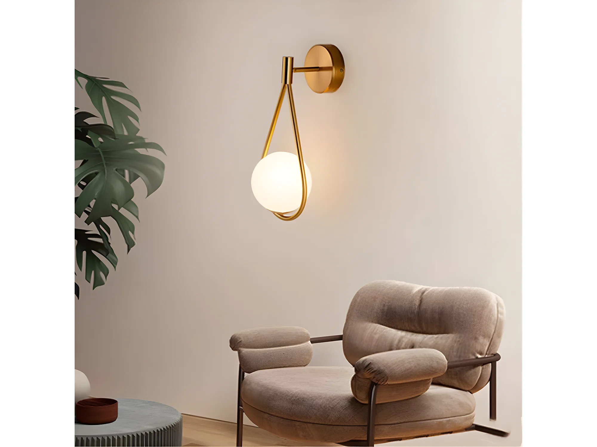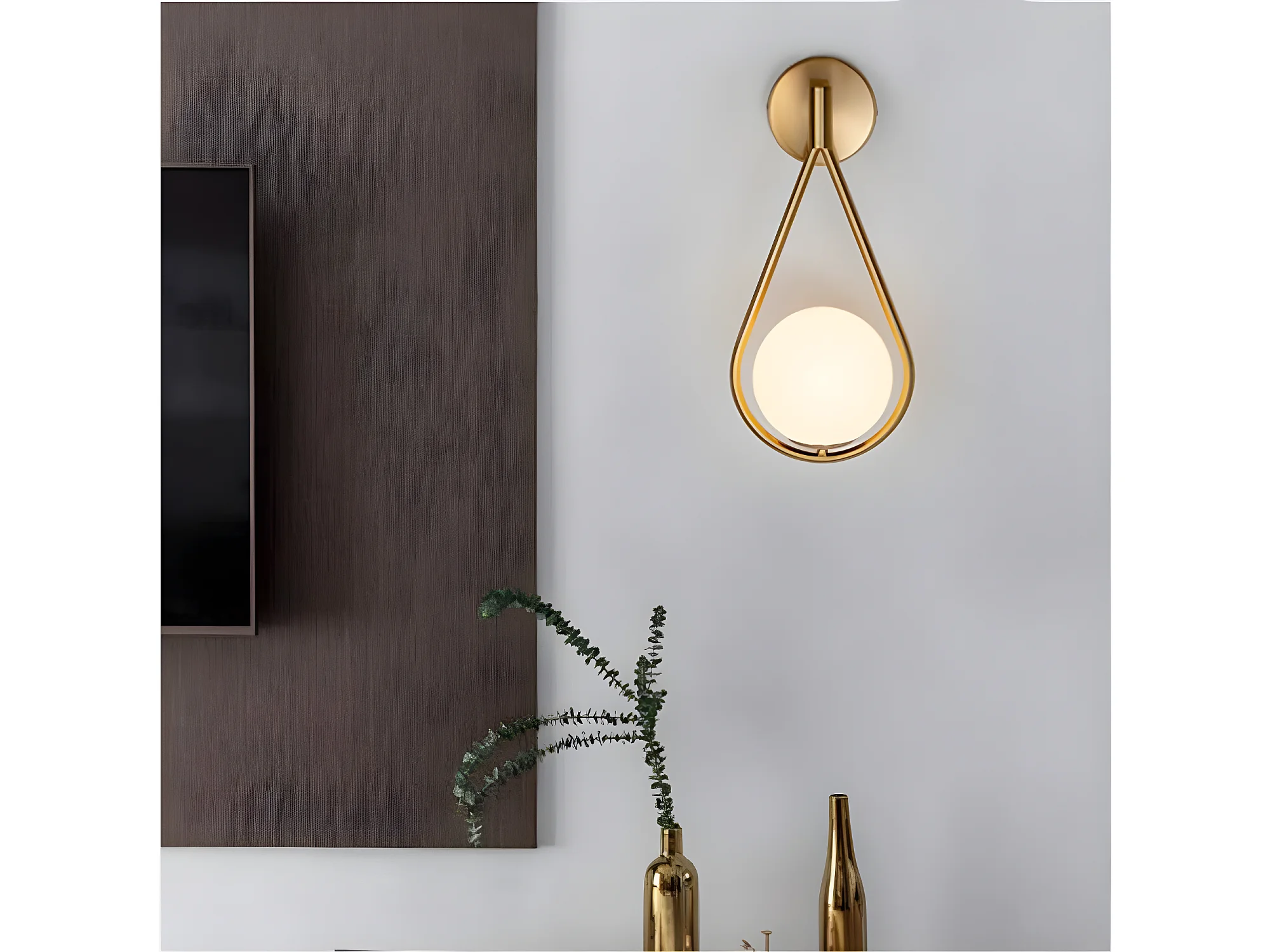 Applique murale industriel boule ronde , or et blanc, 21*45cm, sans ampoule E27