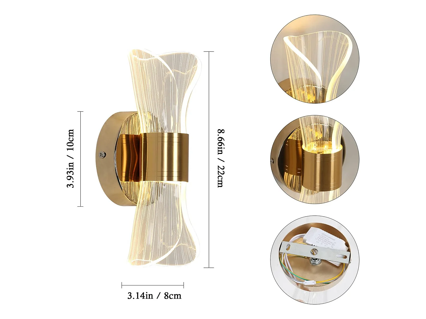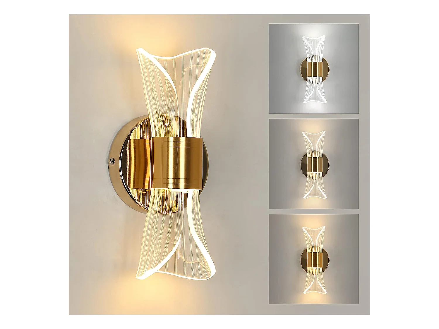 Applique murale intérieur led dimmable moderne, or, 22*10*8cm, 12w design créatif, 2700K-6500K