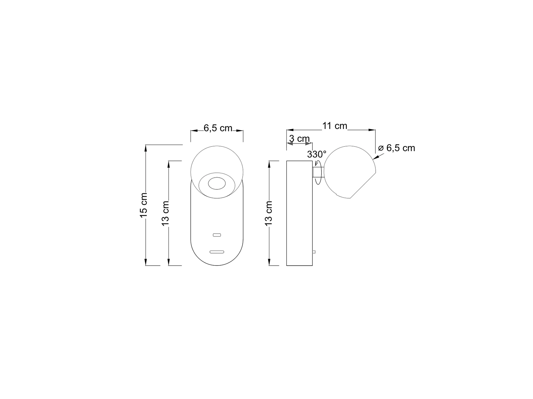 Applique murale LED dorée chic avec chargeur Type-C et interrupteur – Yvan