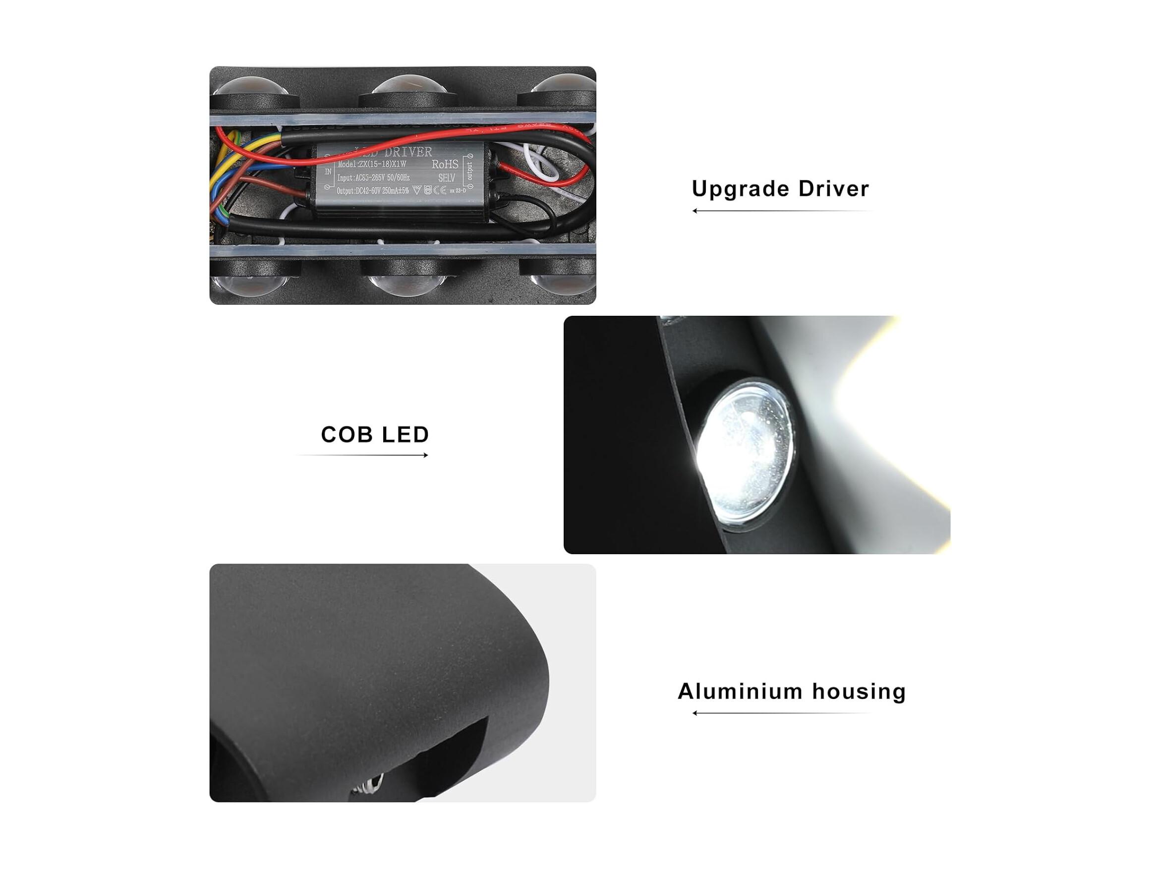 Applique Murale LED Extérieur Intérieur,Noir Moderne Up Down Luminaire Mural,Éclairage Mural pour Salon Chambre Salle de Bain (18W,Blanc Froid 6000K)
