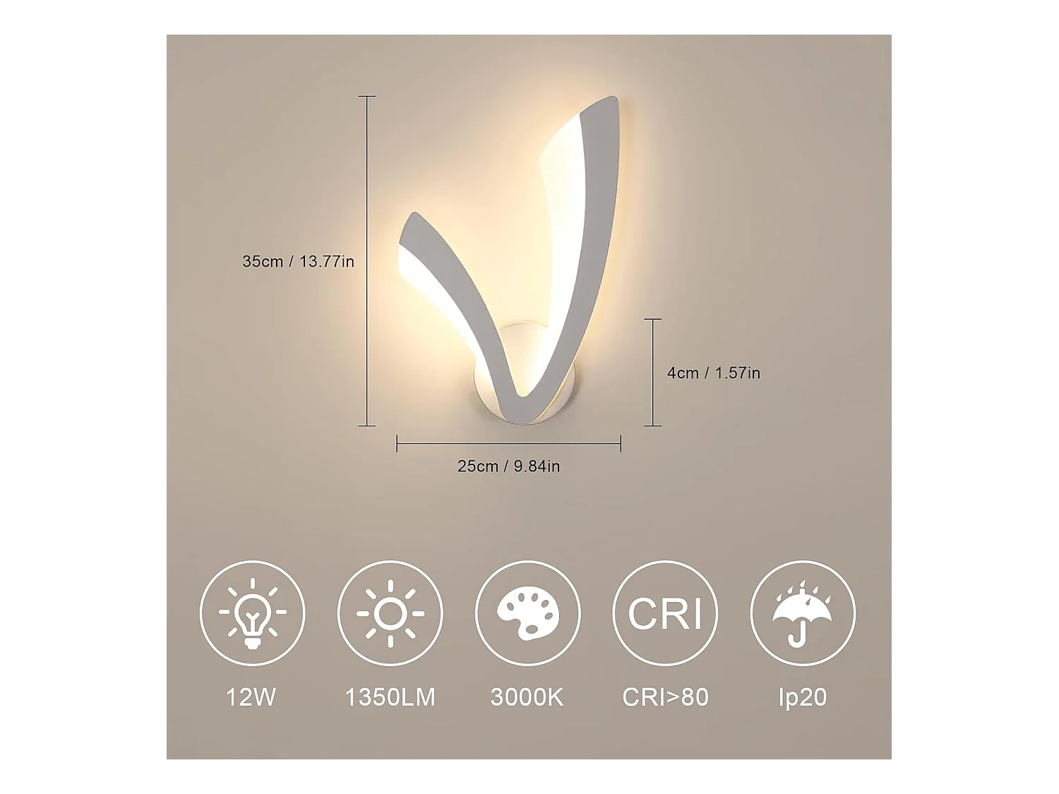 Applique Murale LED Moderne 12W, Luminaire Mural en Acrylique Forme de V, Éclairage Chaleureux 3000K pour Chambre, Salon, Couloirs