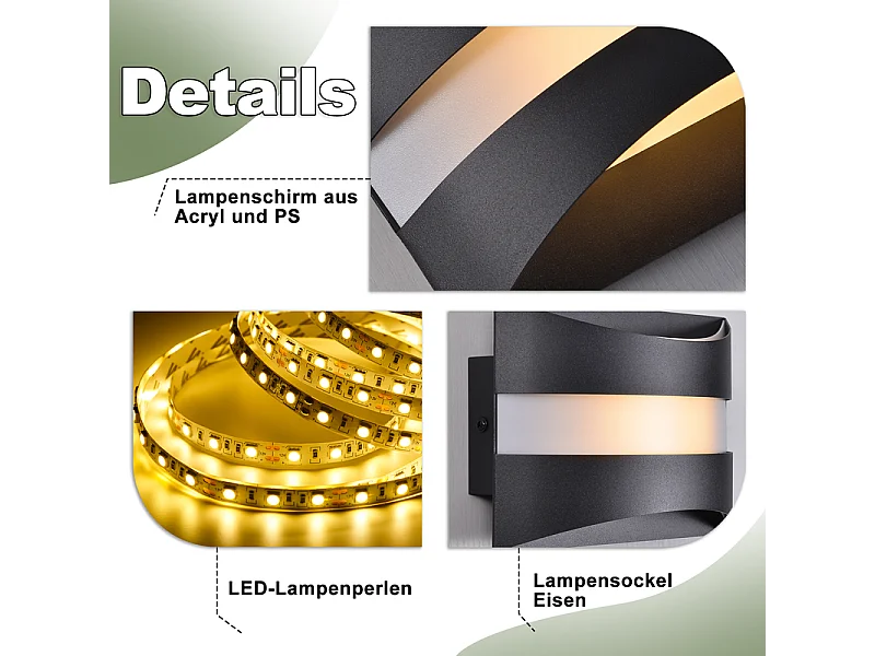 Applique murale LED Nettlife pour intérieur - Éclairage mural noir, éclairage vers le haut et vers le bas, 5W 3 000K, blanc chaud