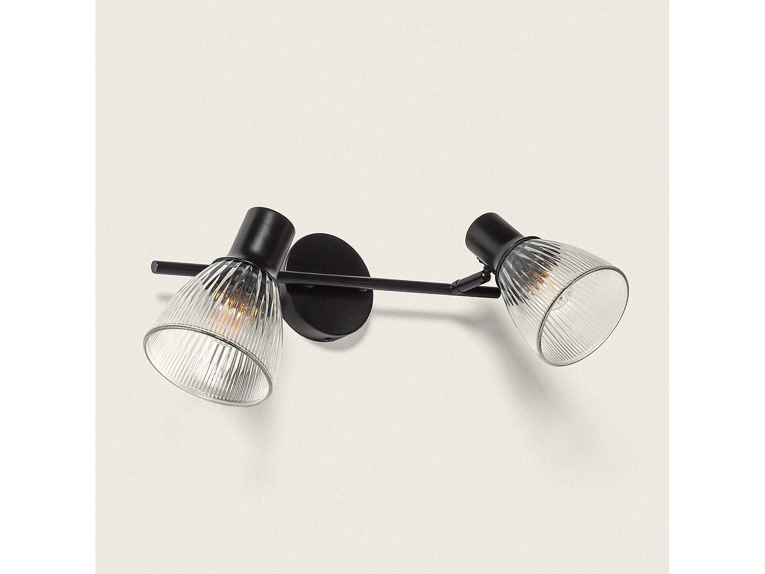 Applique Murale Métal et Verre Aron 2 Spots Noir