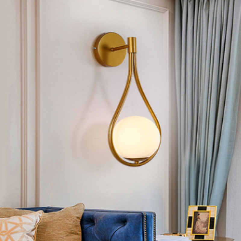 Applique murale nordique en métal et verre, abat-jour blanc laiteux doré, douille E27, ampoule non incluse, pour salon/chambre/cuisine