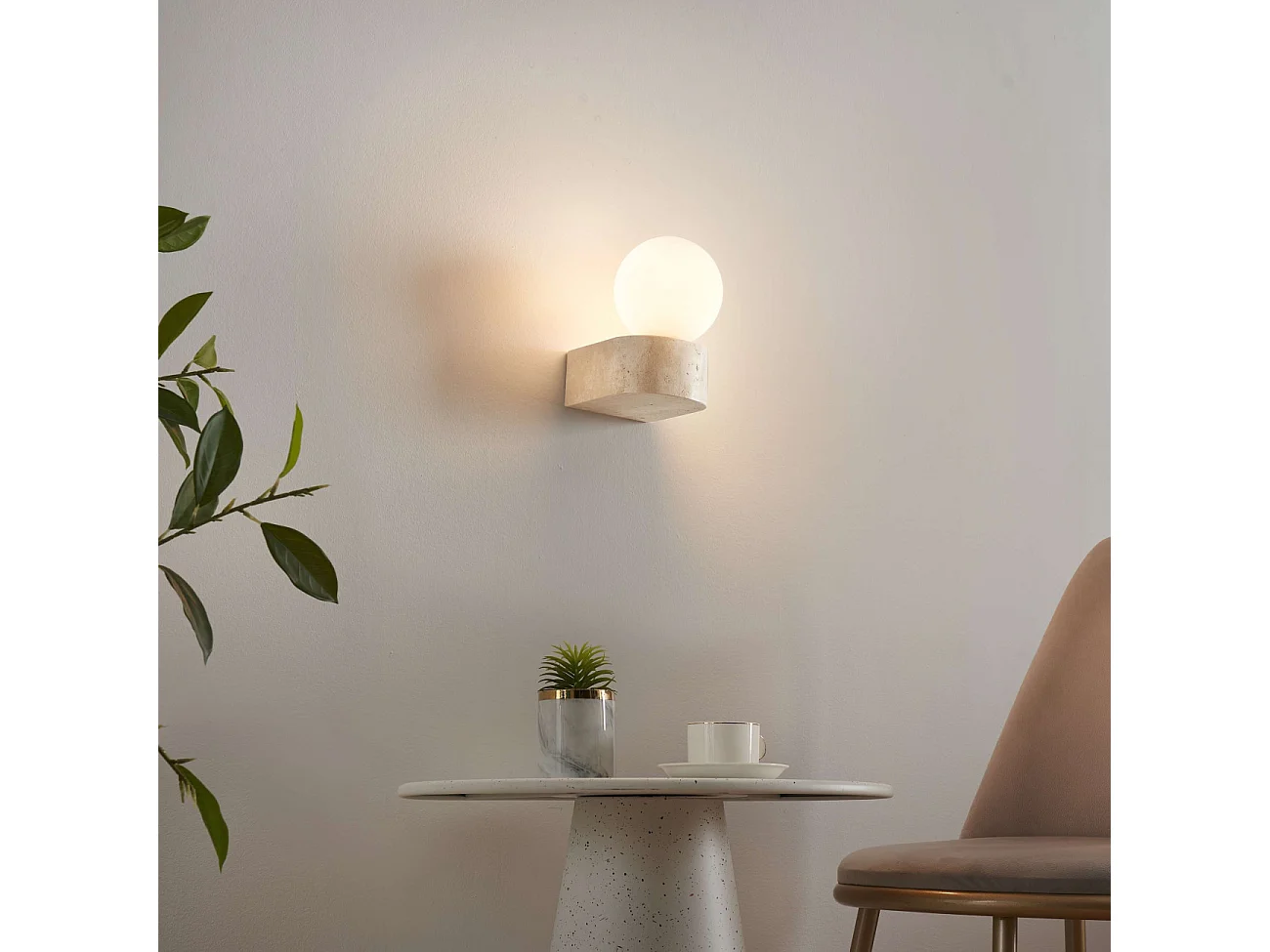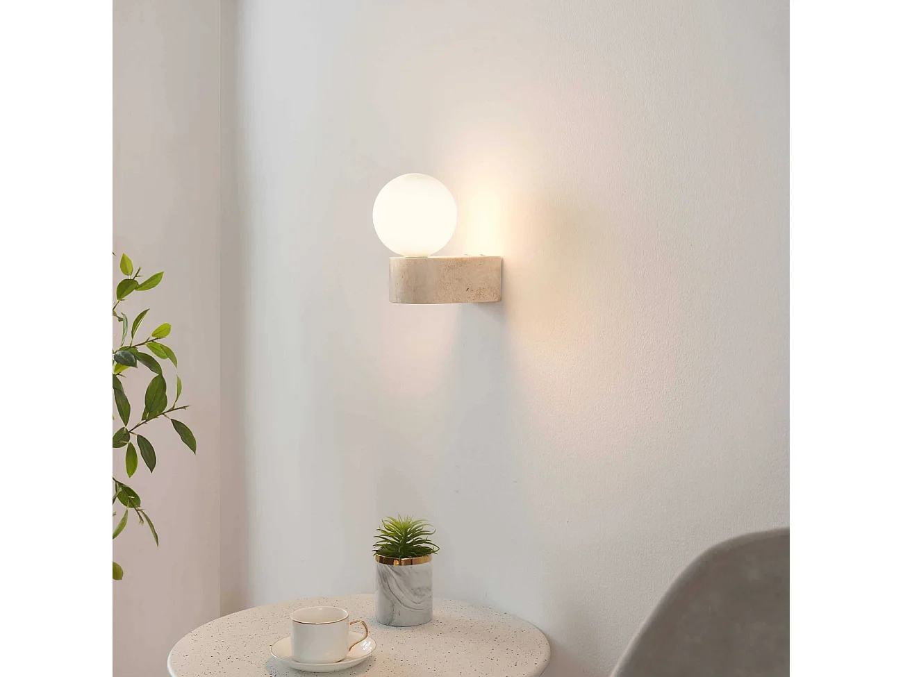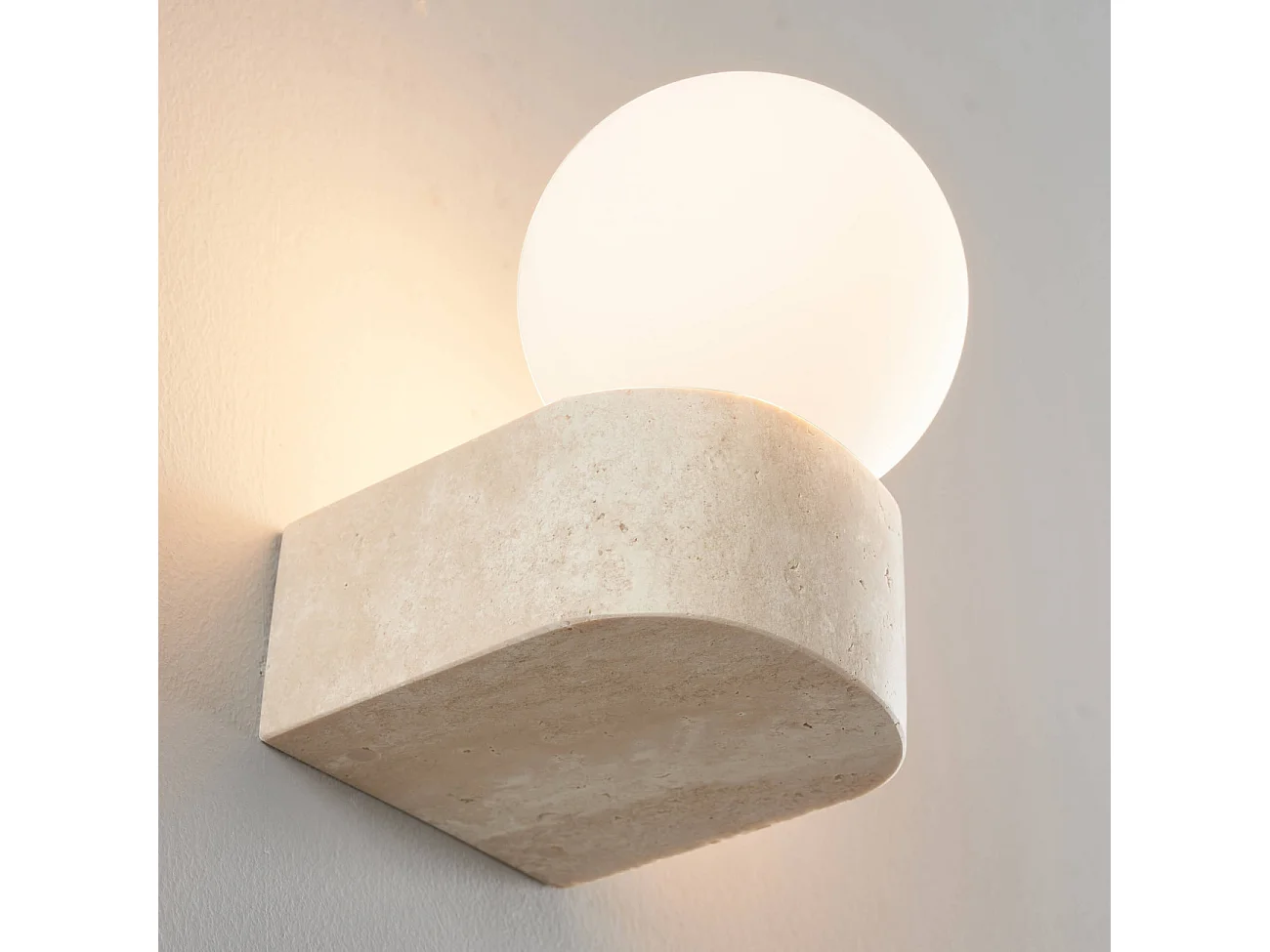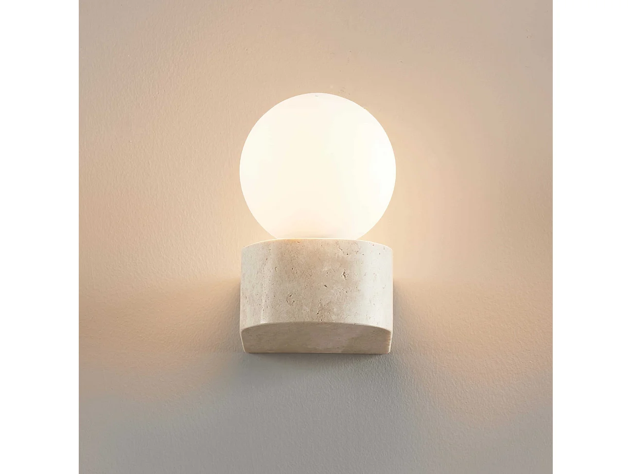 Applique murale sphérique en verre blanc sur socle en pierre - Oriane