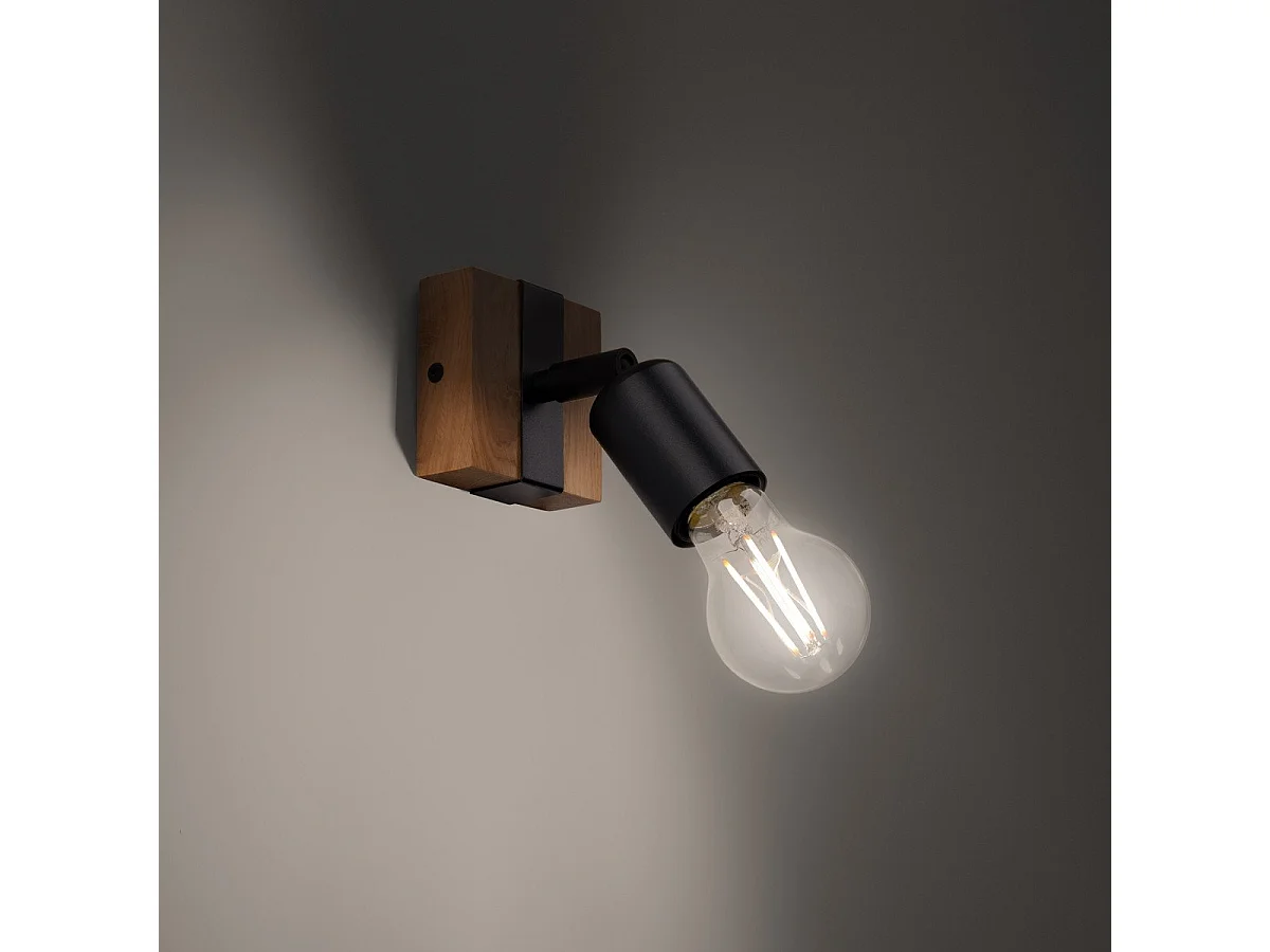 Applique Ember Minimaliste En Acier/Bois - 1 Sources Lumineuses - L.10 X H.24 Cm - Noir/Bois Naturel