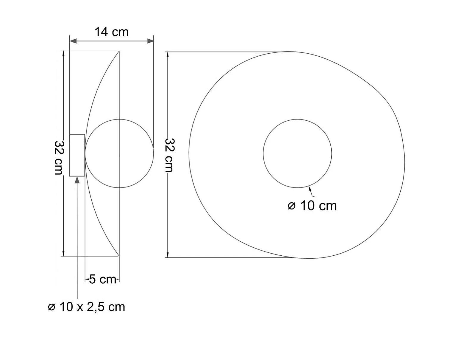Applique verre blanchie 15 cm.