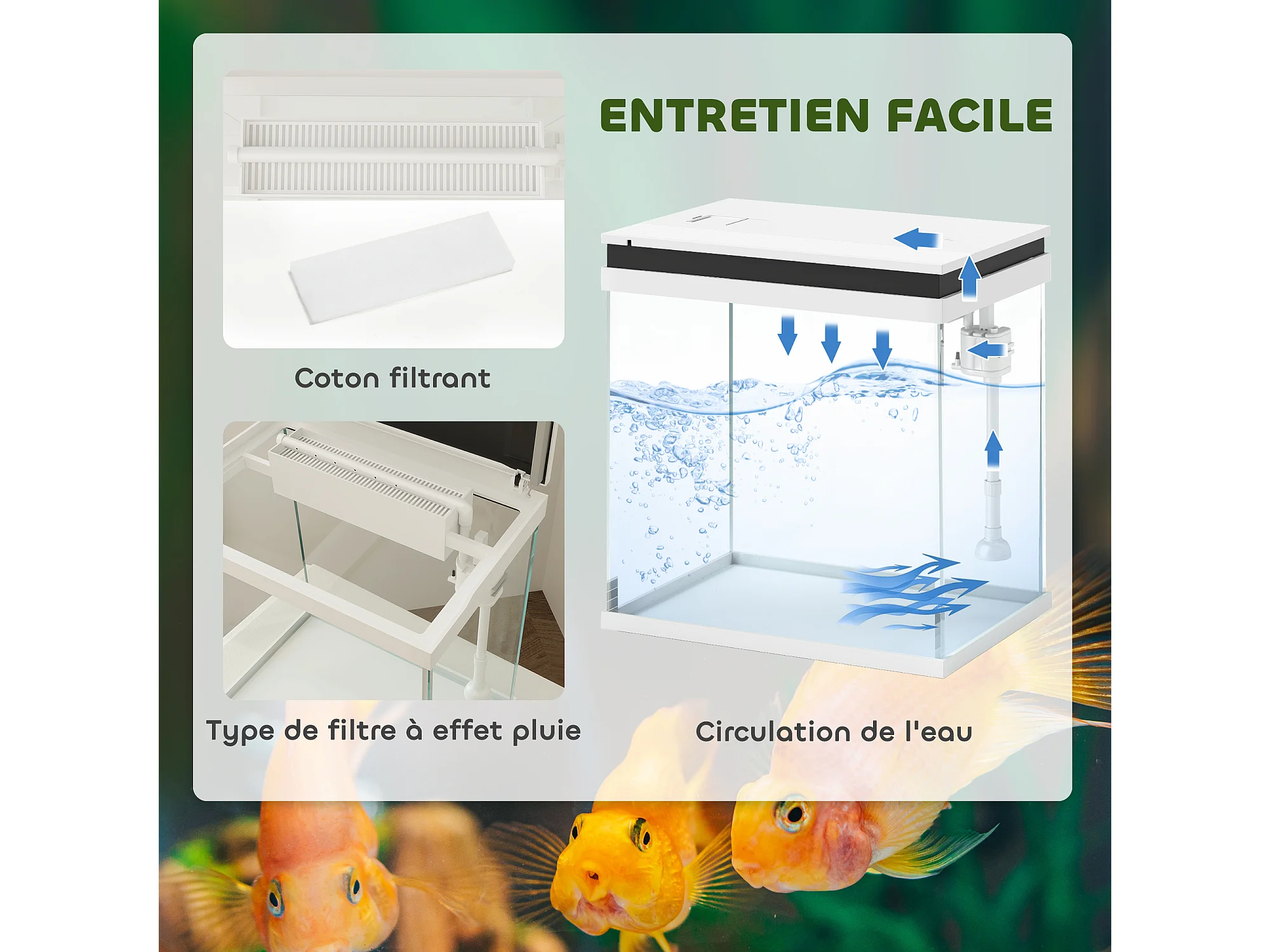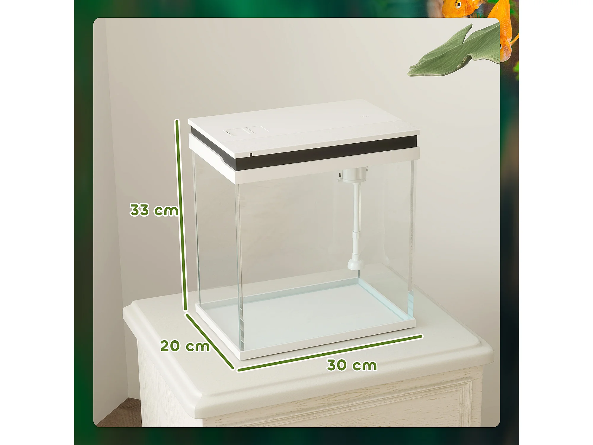 Aquarium en verre 14L - système de filtration, éclairage LED, pompe à eau, couvercle - blanc