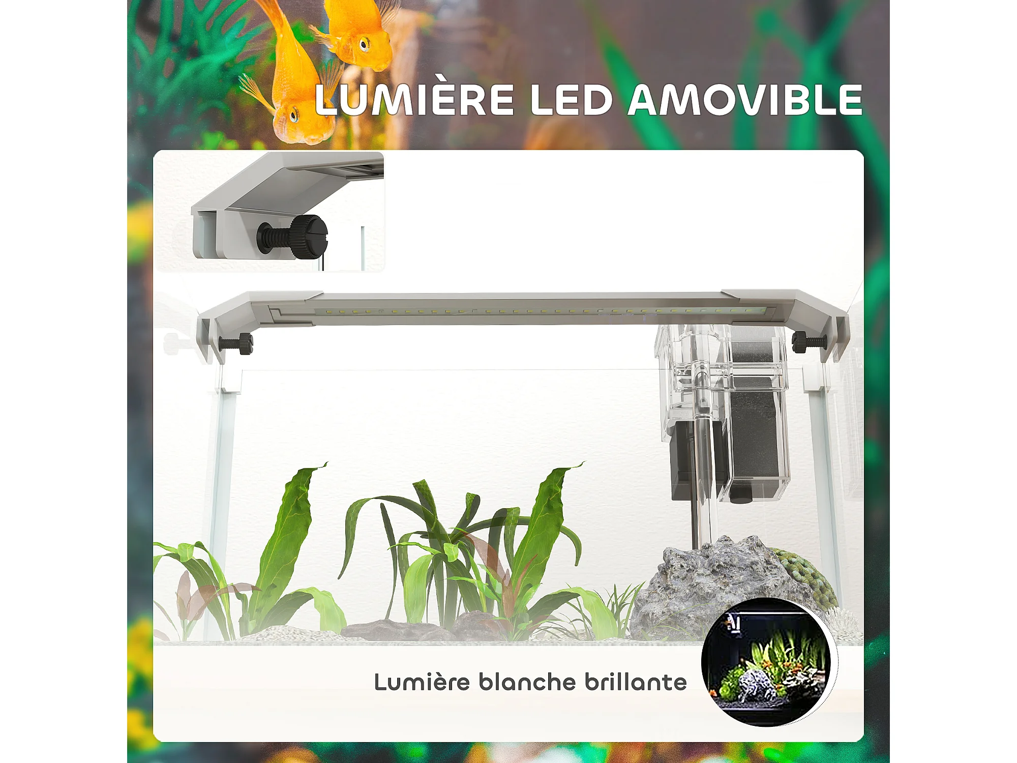 Aquarium en verre 20L - éclairage LED, pompe à filtre - blanc
