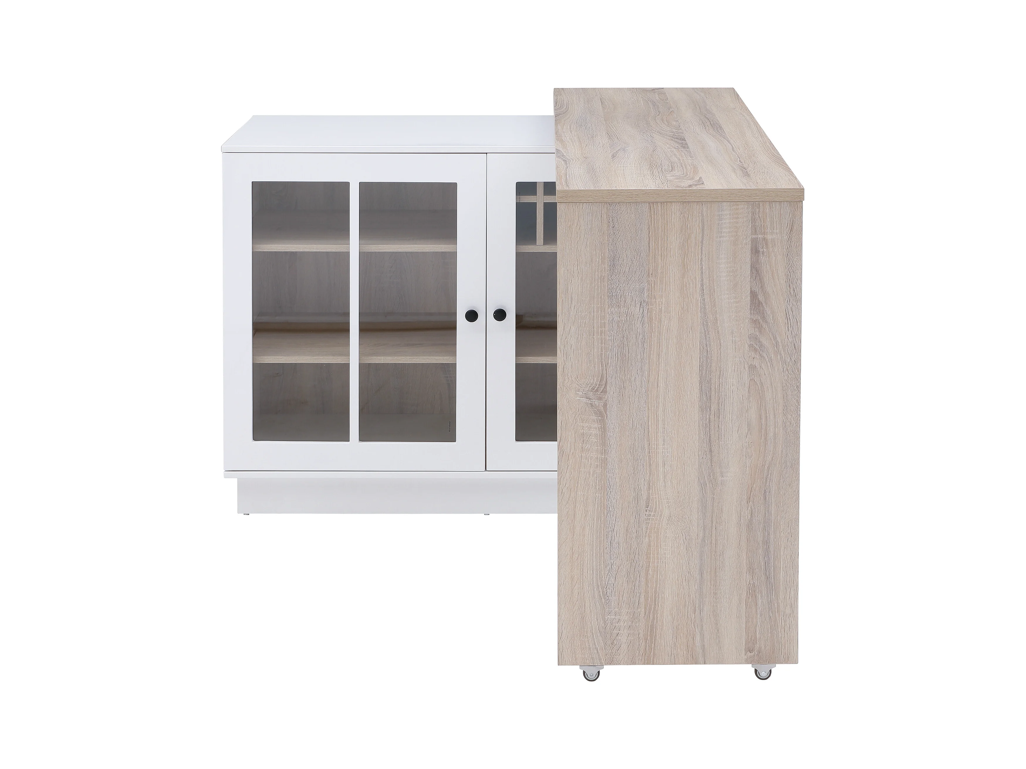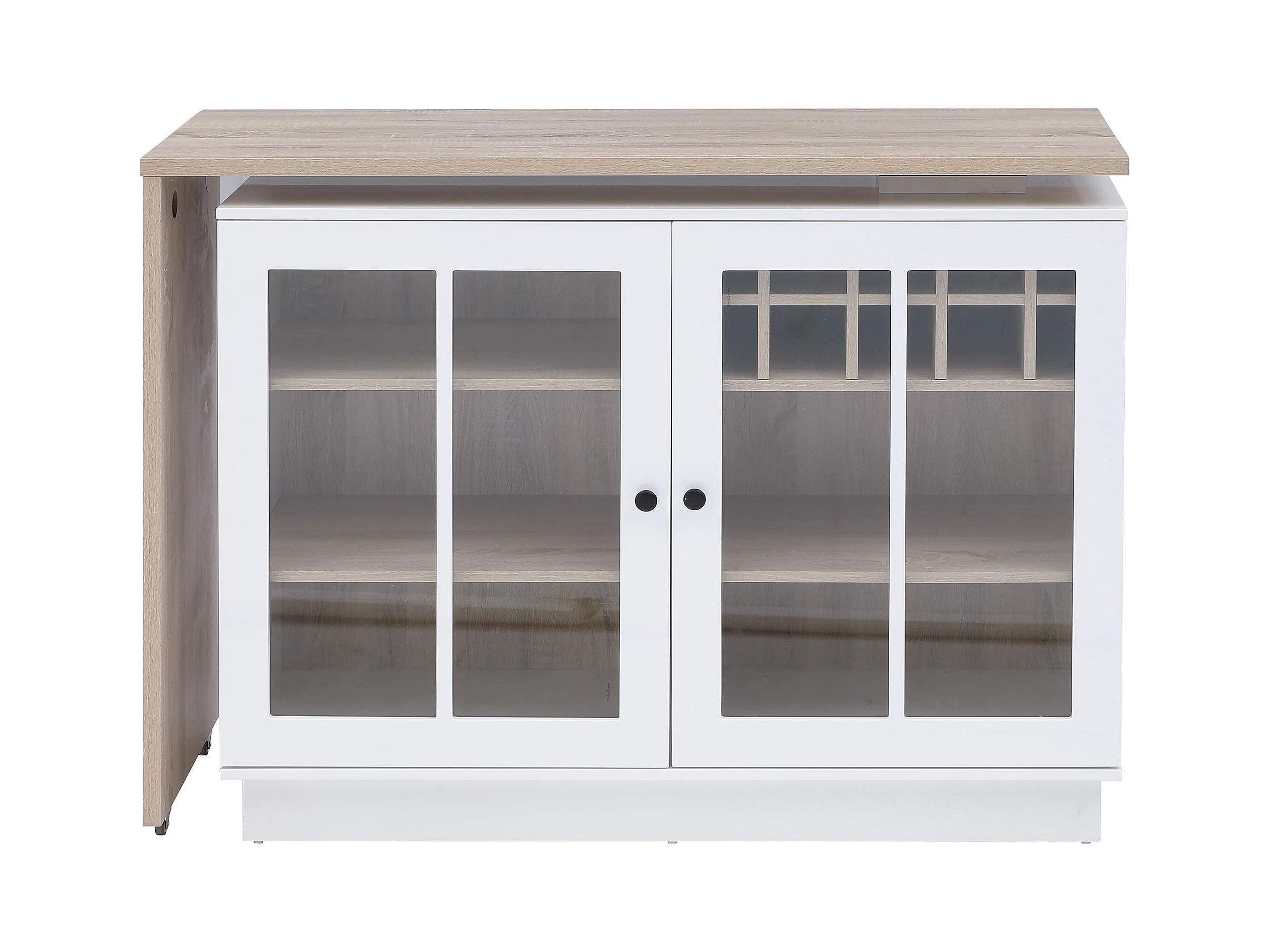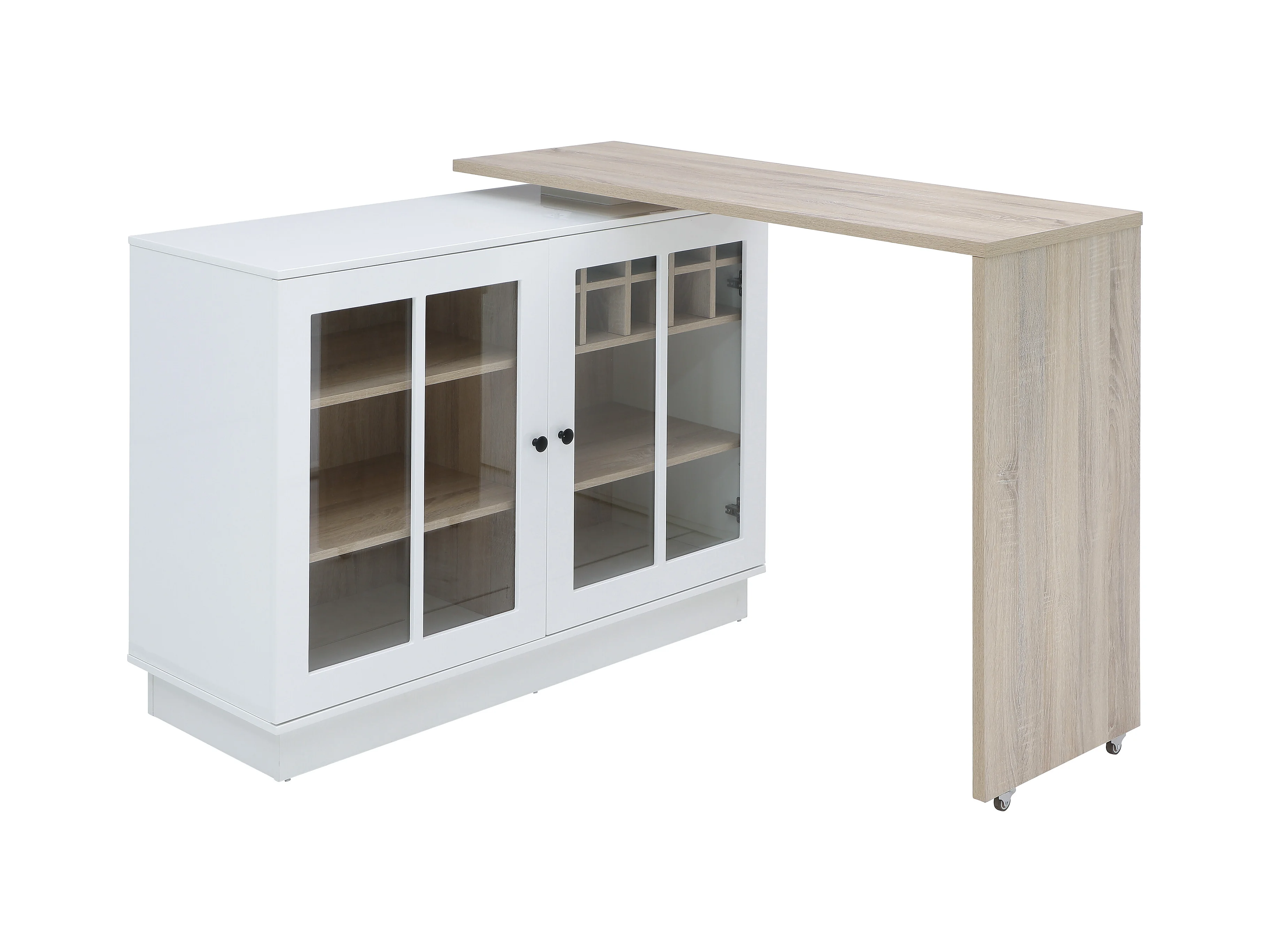 Meuble de bar pivotant avec rangements - Blanc et naturel - ARAMETA