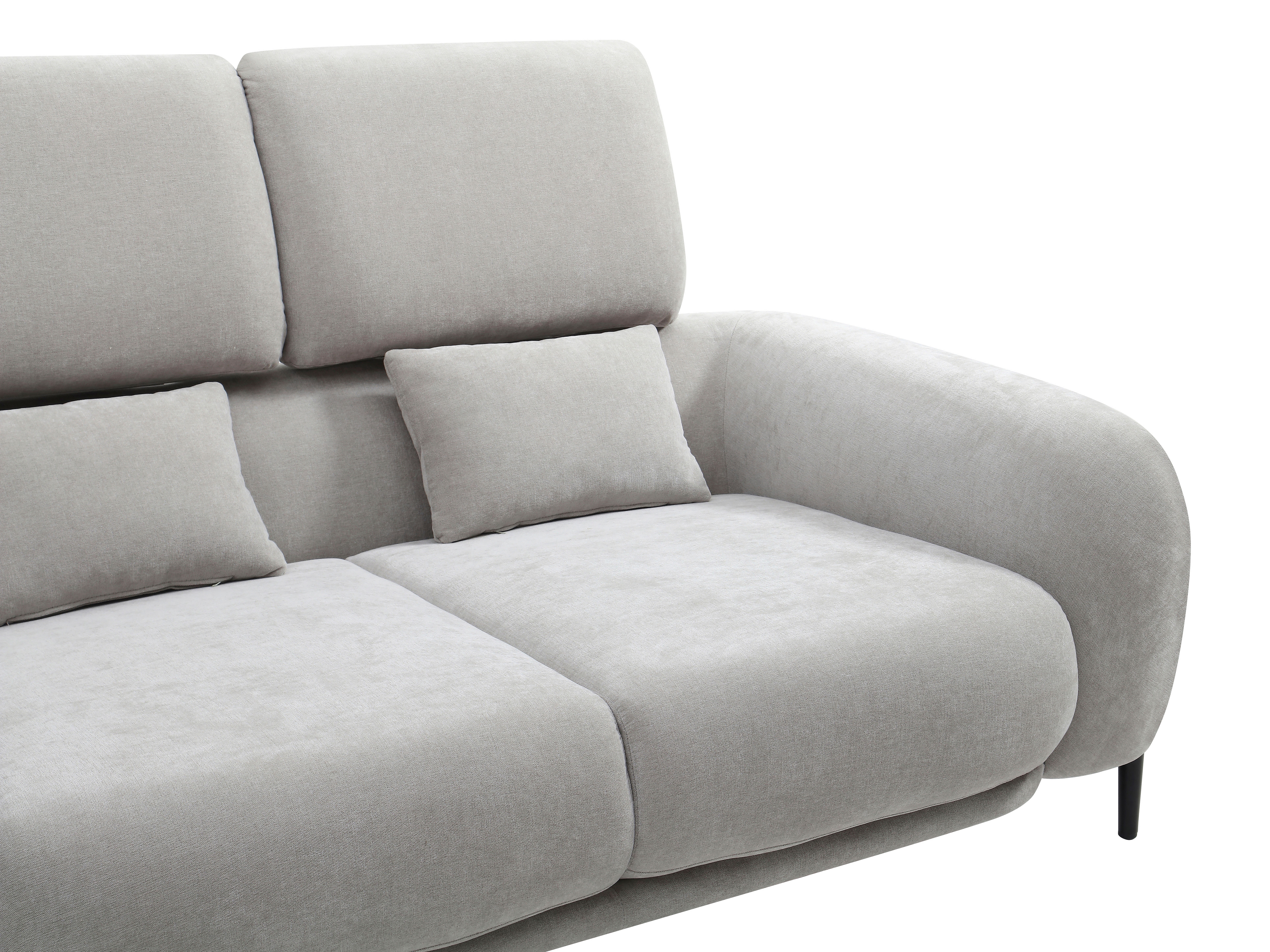 Canapés 3 places et 2 places avec dossier relevable en tissu gris clair ARAVIO