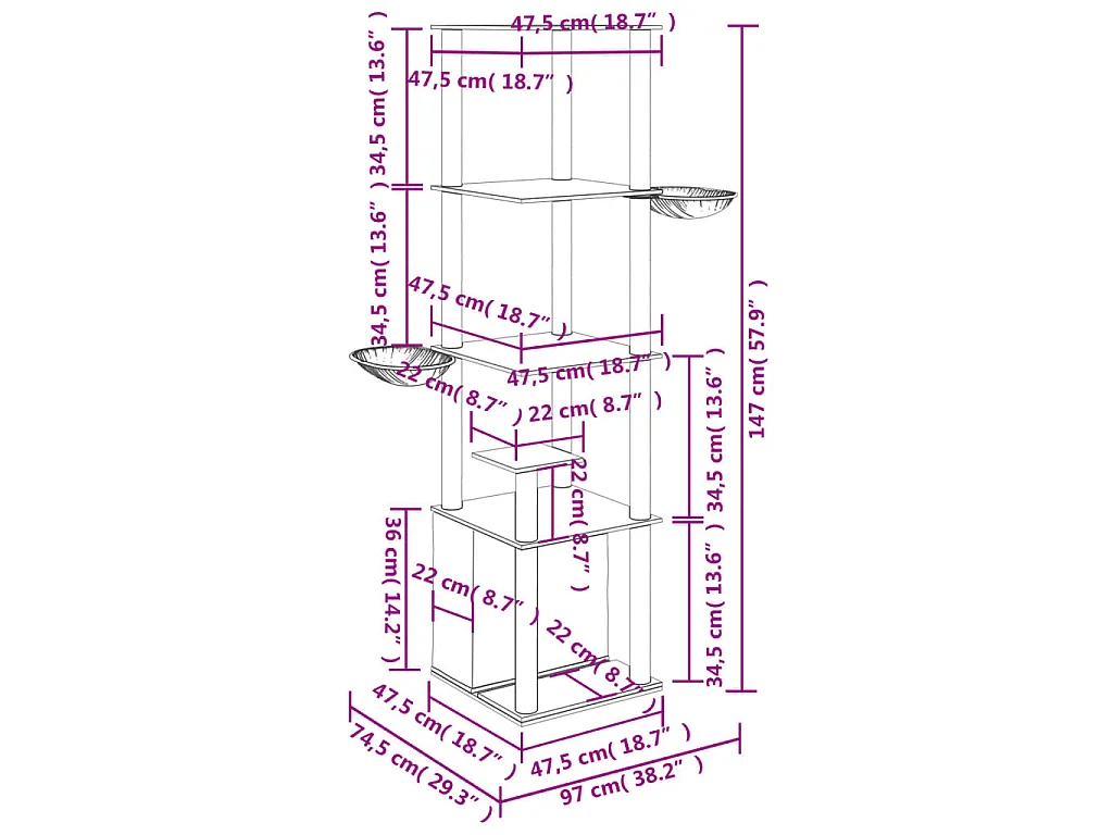 Arbre à chat avec griffoirs en sisal gris clair 147 cm